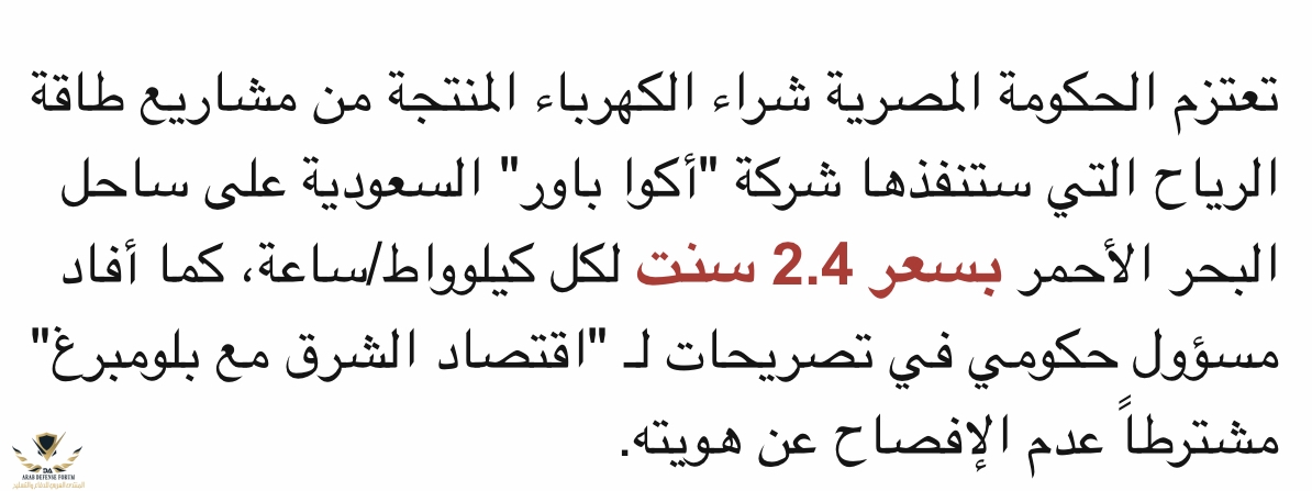 اكوا باور السعودية تبيع الكهرباء للحكومة المصرية