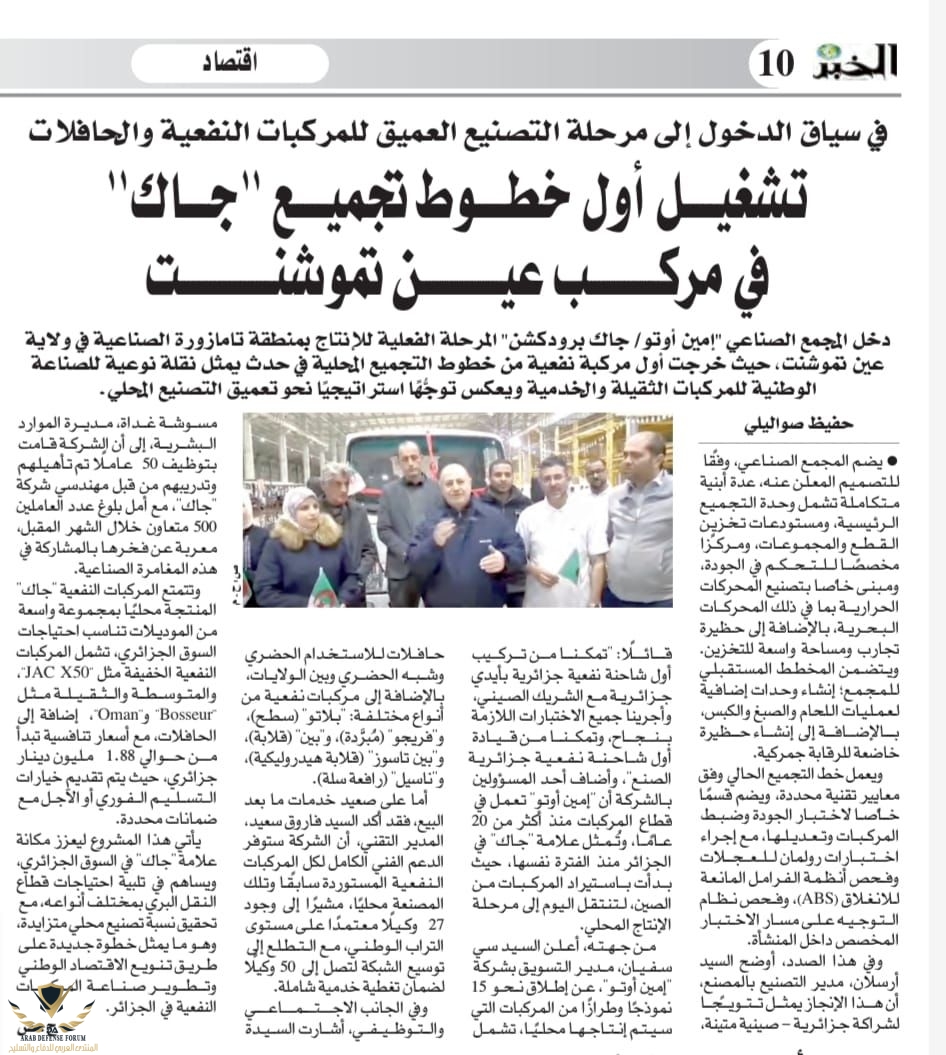 Sortie du 1er véhicule utilitaire JAC des chaînes de montage du complexe industriel Sarl EMIN AUTO/ JAC PRODUCTION au niveau de la Z.I TAMAZOURA, W - AIN TEMOUCHENT خروج أول سيارة نفعية من علامة...
