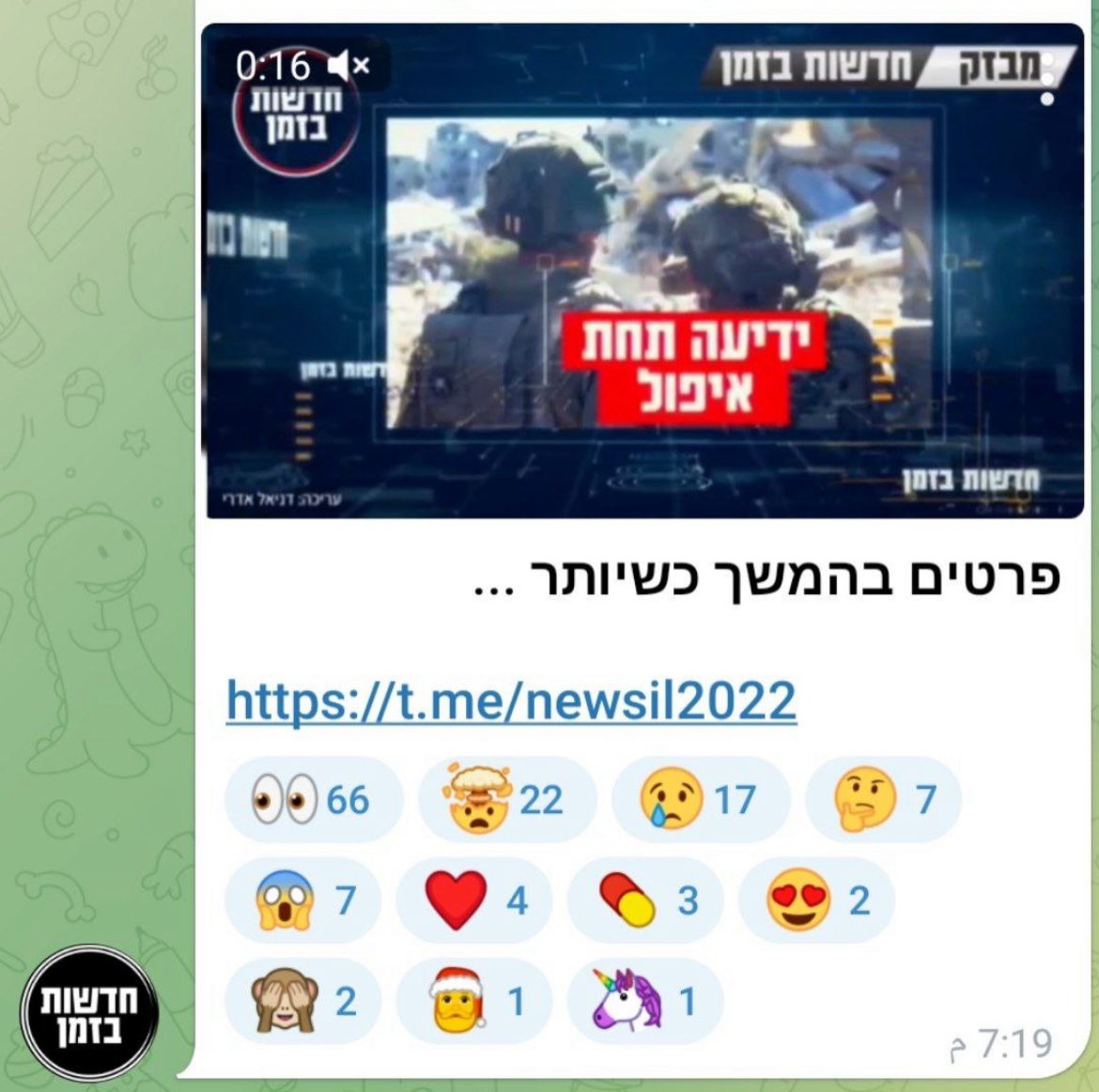 الآن فرصة المقاومة والقسام لترتيب أوراقهم وترميم صفوفهم في ظل انشغال العدو وخاصة سلاح جوه في معارك أخرى والمراقبة على غزة ستقلالقناة 12 العبرية: