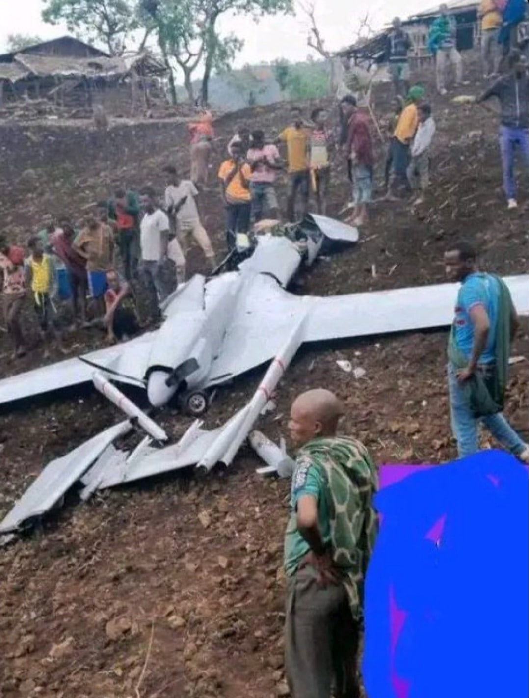 راك بهدلتهم بالأدلة قبل بيان وزارة الدفاعيا البايخ الدرون عندما يسقط لا يتفحم بل يتمزق لكن يحافظ على هيكله ...اما هذا الاكنجي فقد تما تفجيره في السماء بصاروخ جو جو و هذا واضح من اثار النيران على الهيكل الذي تبخر كليا