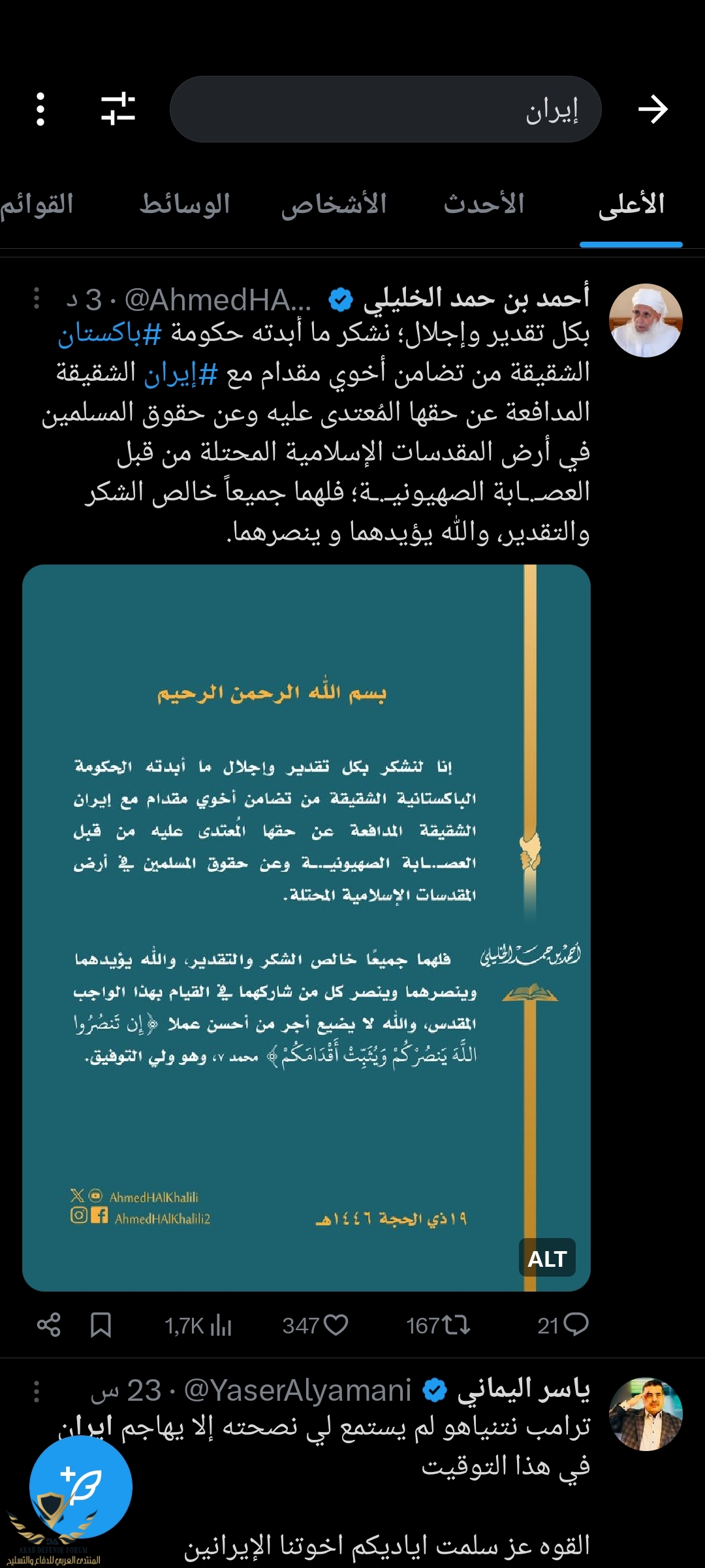 التحالف الايراني-العماني هو اغرب تحالف ممكن يمر عليك ، لانه تحالف قائم بين الروافض (اللي يعبدون الامام علي) والاباضية ( يكفرون الامام علي)مشاهدة المرفق 791945لا اعلم لمذا يظن ان ايران تقوم بهذا من أجل فلسطين تفكير عجيب غريب