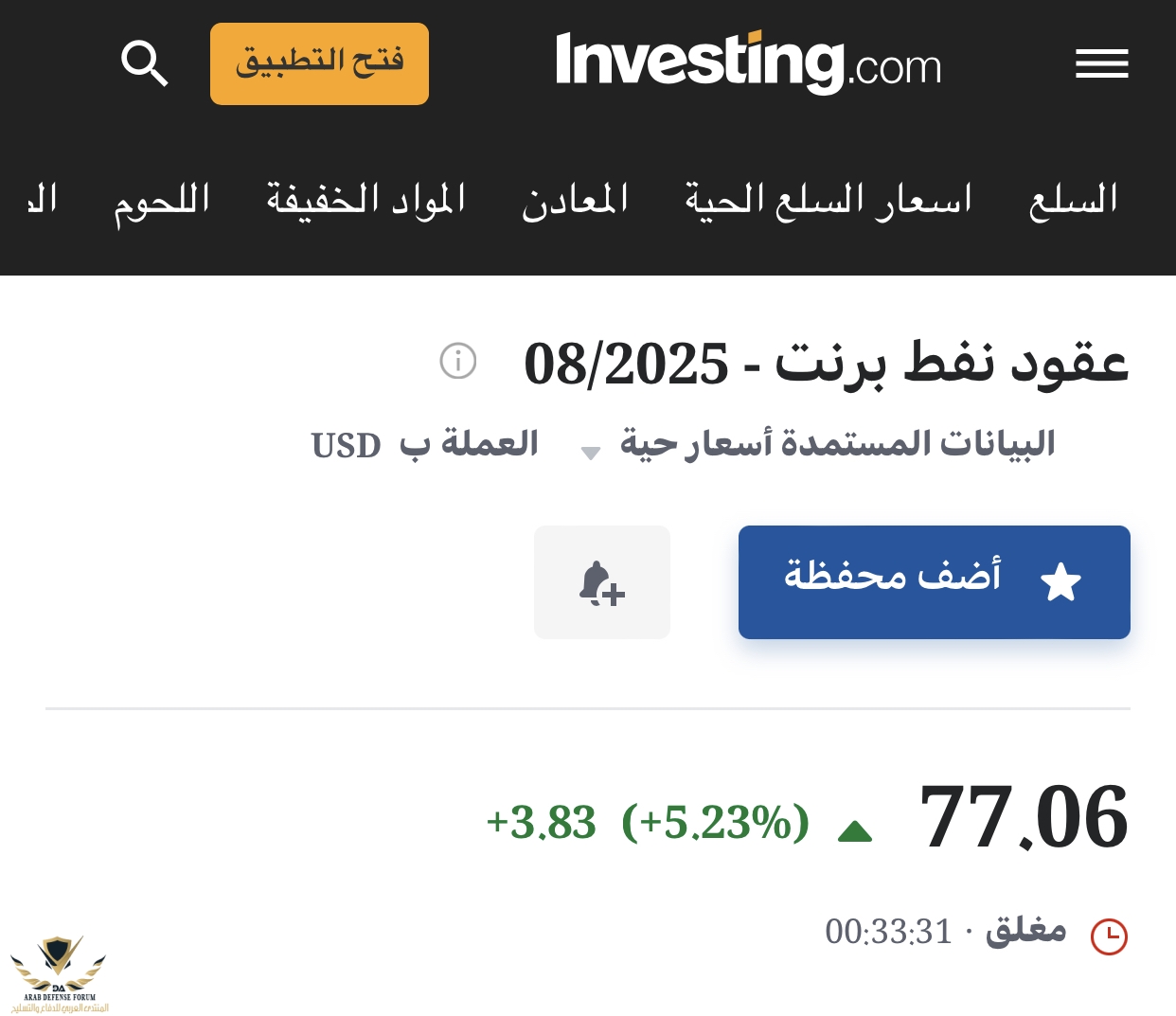 اغلق 77 مرتفع مبشر بالخير ونتمنى حركة كذا ولا كذا من ايران والصهينه للوصول الى 80 دولار