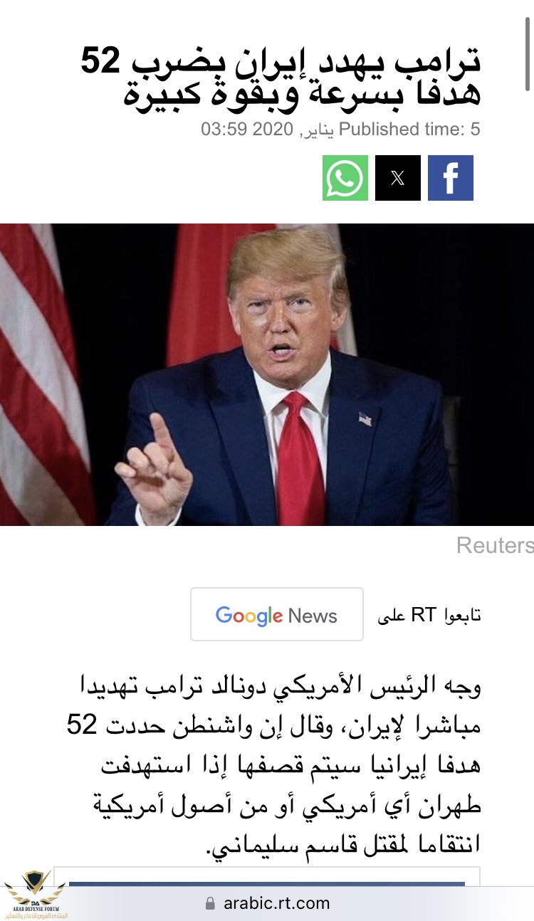 نعم كما رصخوا لترامب لمن هددهم بصرب 52 هدف في حال ايران هاجمت اي قاعدة امريكية انتقاما ل قاسم سليمانيالايرانيون اذكياء يعرفون ان امريكا ليست بلد يمكن المزاح معاه وسيرضخون لترامب