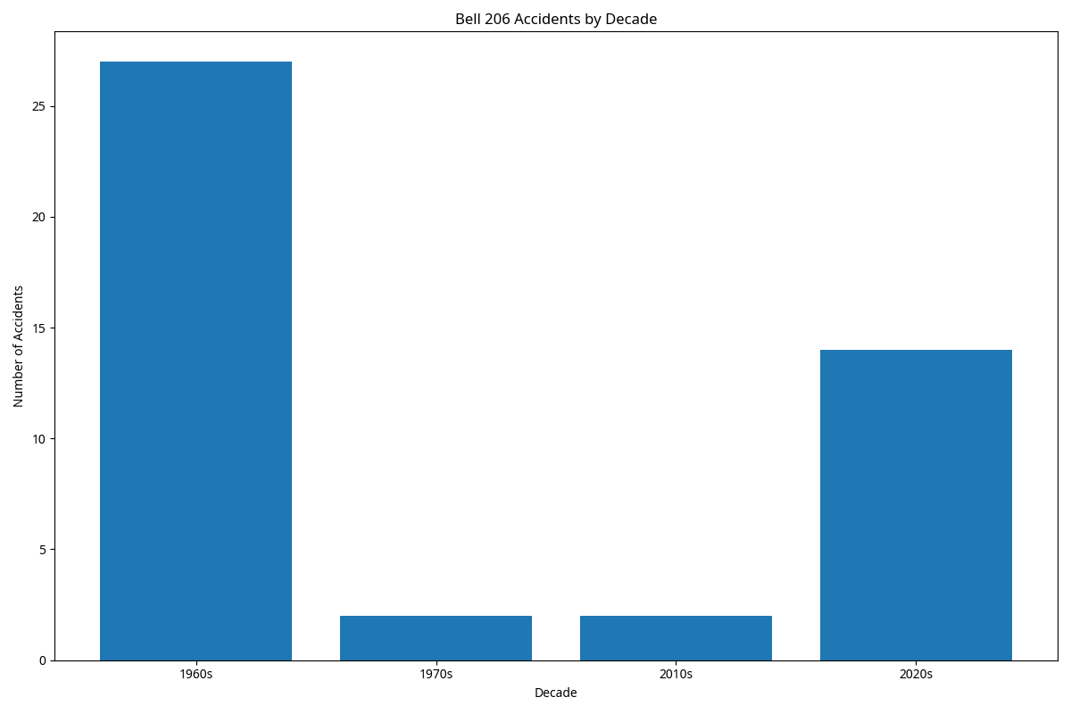 إحصائية تتعلق بعدد حوادث الطائرات المروحية من طراز Bell 206.