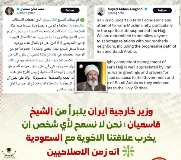 وزير خارجية ايران يتبرأ من الشيخ قاسميان:نحن لا نسمح لأي شخص ان يخرب علاقتنا الاخوية مع السعودية