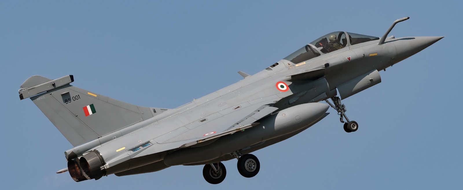هذه هي أول طائرة مقاتلة متعددة الأدوار من سلسلة رافال التابعة لسلاح الجو الهندي من السرب رقم 17، تُحلّق في الجو في معرض آيرو إنديا 2021.