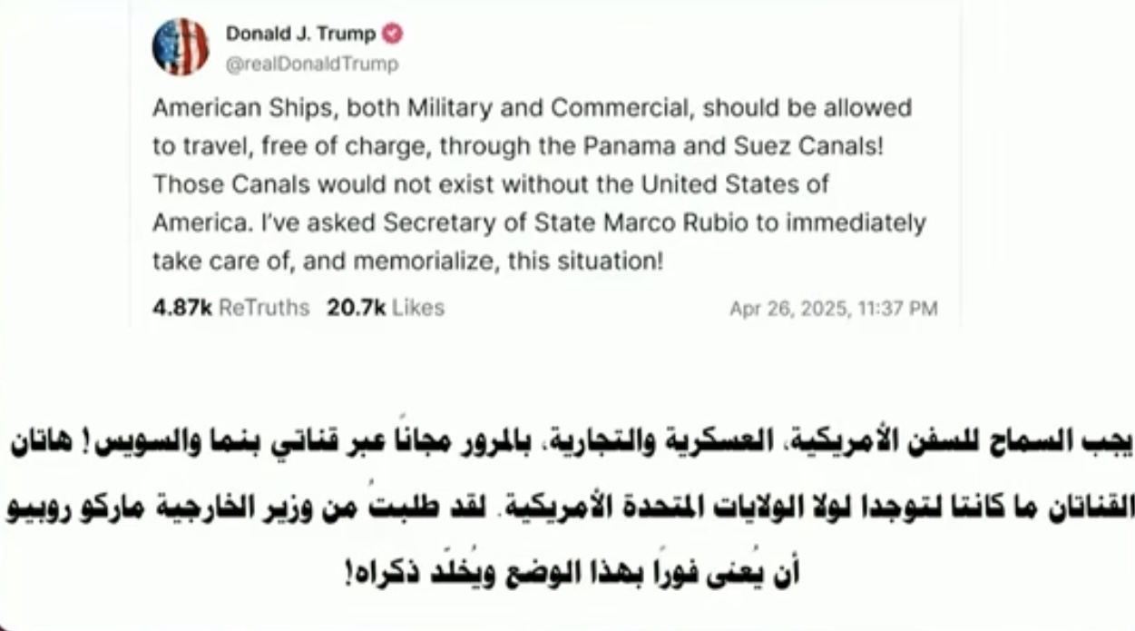 المشكله ان ترمب اصدر قراره دون الرجوع او التفاوض مع مصر و بنما وامر وزير خارجيته تنفيذ الامر مباشره ❗