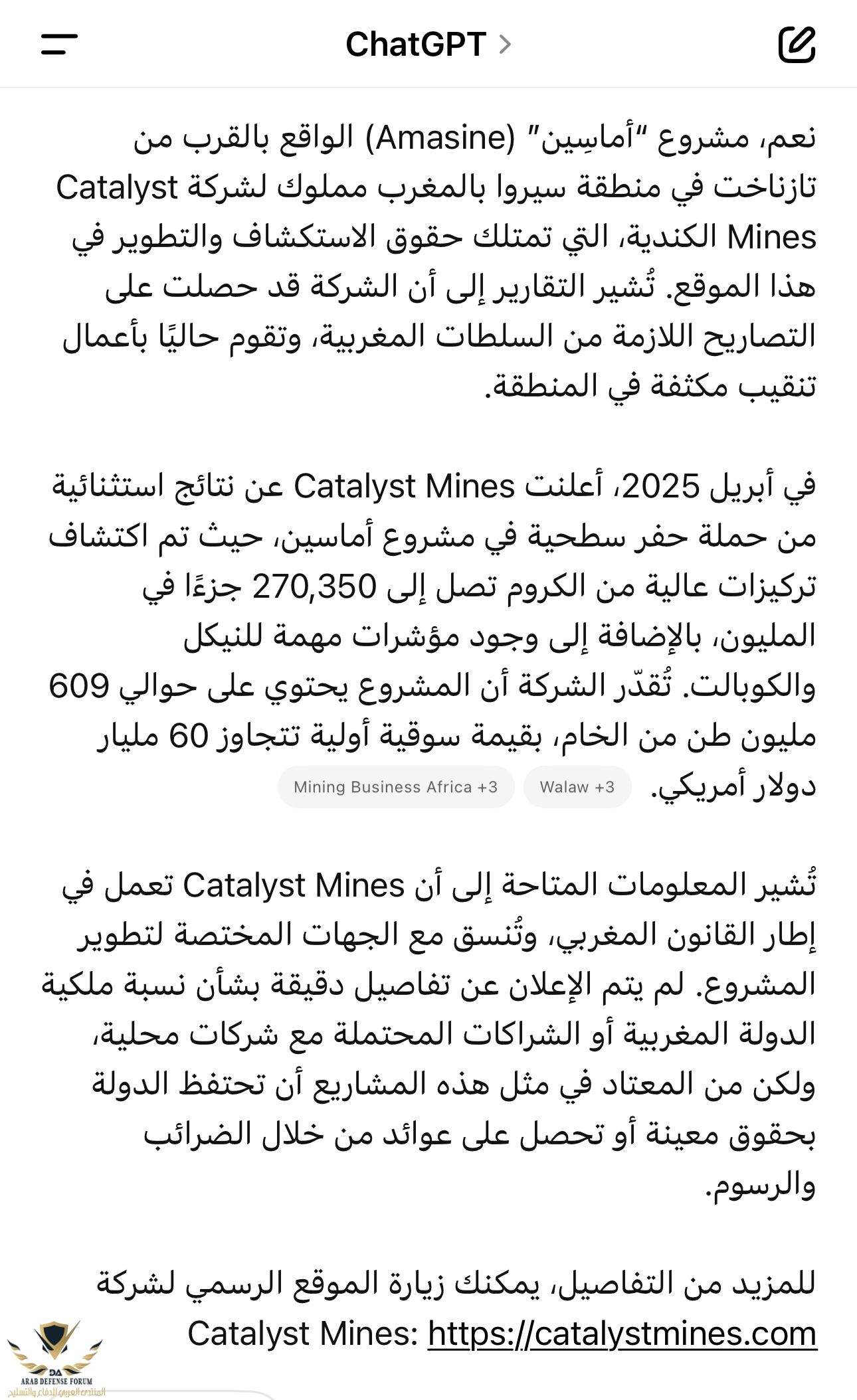 وبحسب الوثائق الرسمية التي اطلعت عليها “العمق”، تركز Catalyst Mines Inc على تطوير أصول معدنية استراتيجية بالمغرب