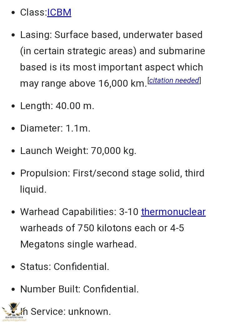 تشير تحليلات إلى أن نسخة نووية من الصاروخ دخلت الخدمة عام 1998.