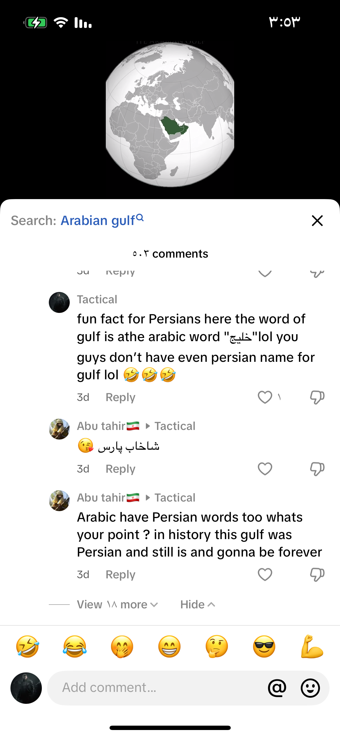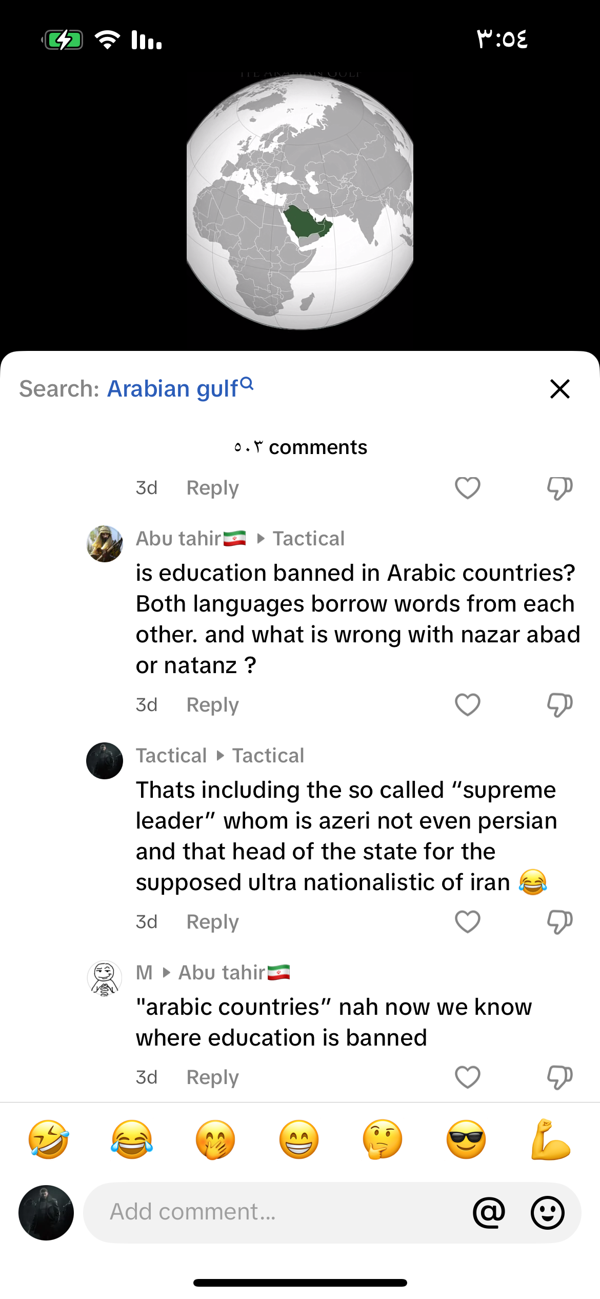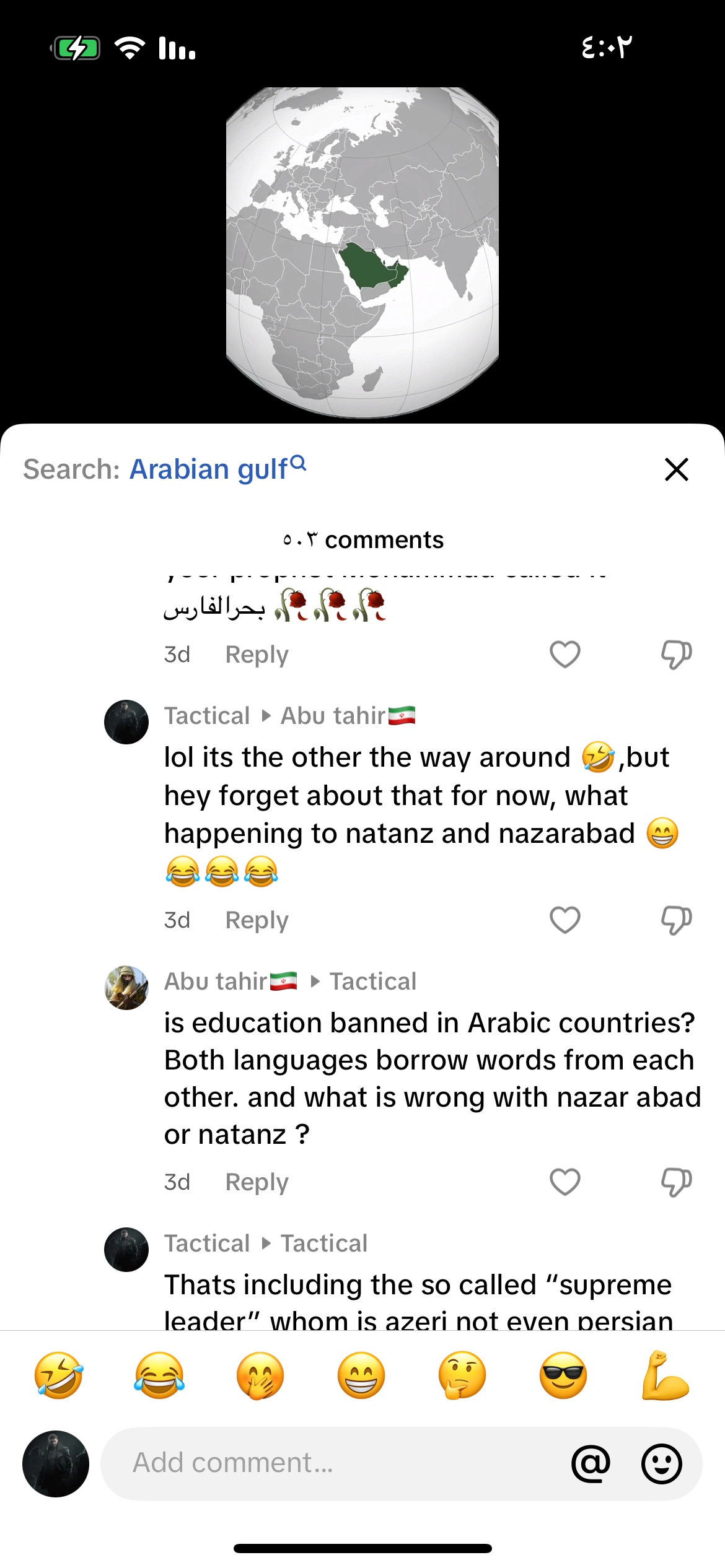 ابي اعرف ليه جيت بحسابك الثاني ياانت بمراسلاتك مع المحافل الدولية كتبته الخليج الفارسي و غصباً عنك مثل ما تكتب دولة اسرائيل و غصباً عنك و لا تتجرأ ان تكتب الخليج العربي او الكيان الصهيوني قال نغير اسامي قال والله انتم مسخرة![]()