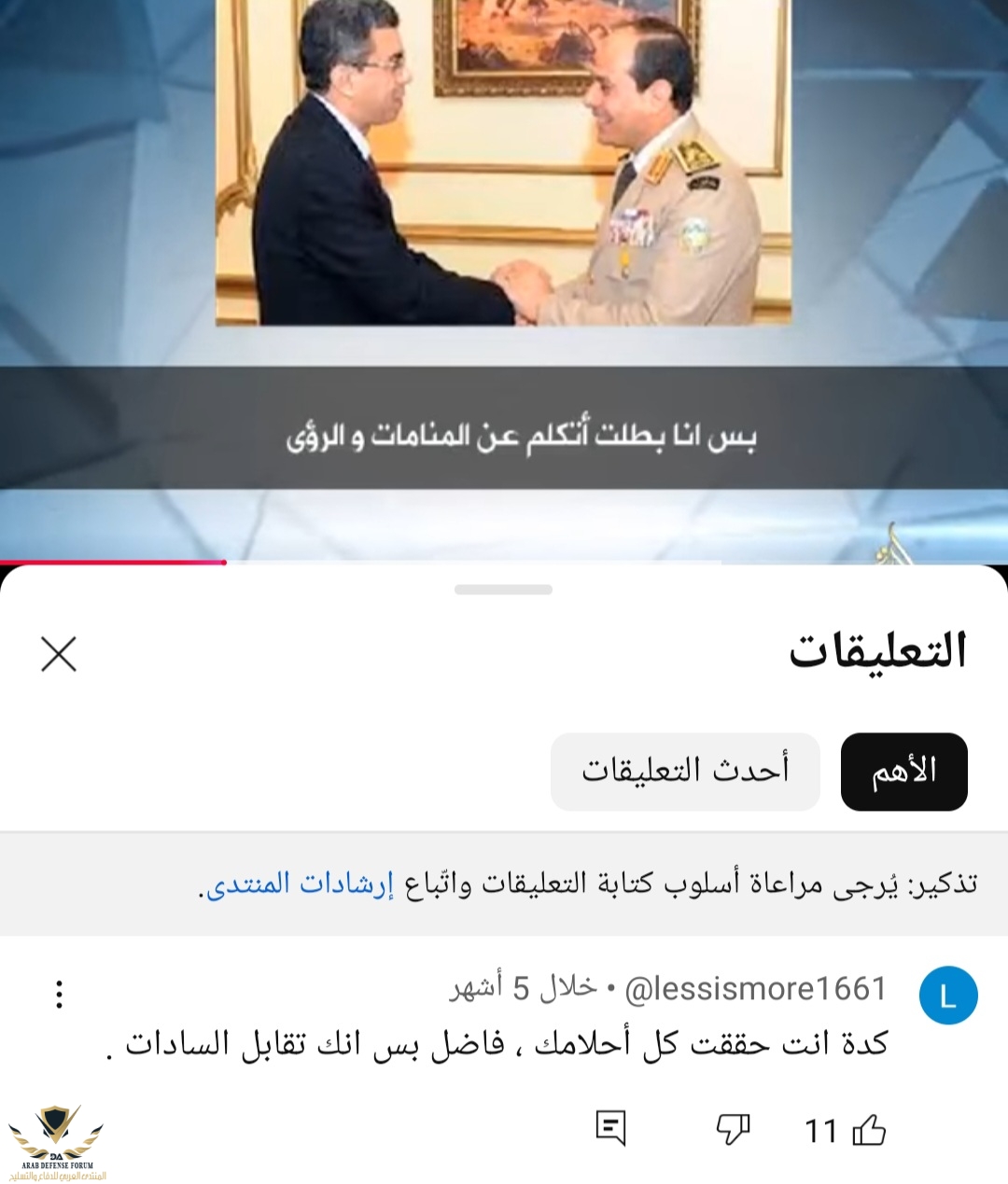 قال السيسي "أنا من الناس اللي ليهم تاريخ طويل في الرؤى -بس الكلام ده ليك إنت- بس أنا بطلت أتكلم في المنامات والرؤى من 7 إلى 8 سنوات يعني من 2006. أنا كان لي منامات وشفت كتير منها من 35 سنة محدش قدر يفسرها أبدا، يعني شفت في المنام من سنين طويلة جدا إنني رافع سيف مكتوب عليه لا إله إلا الله باللون الأحمر وده من 35 سنة".