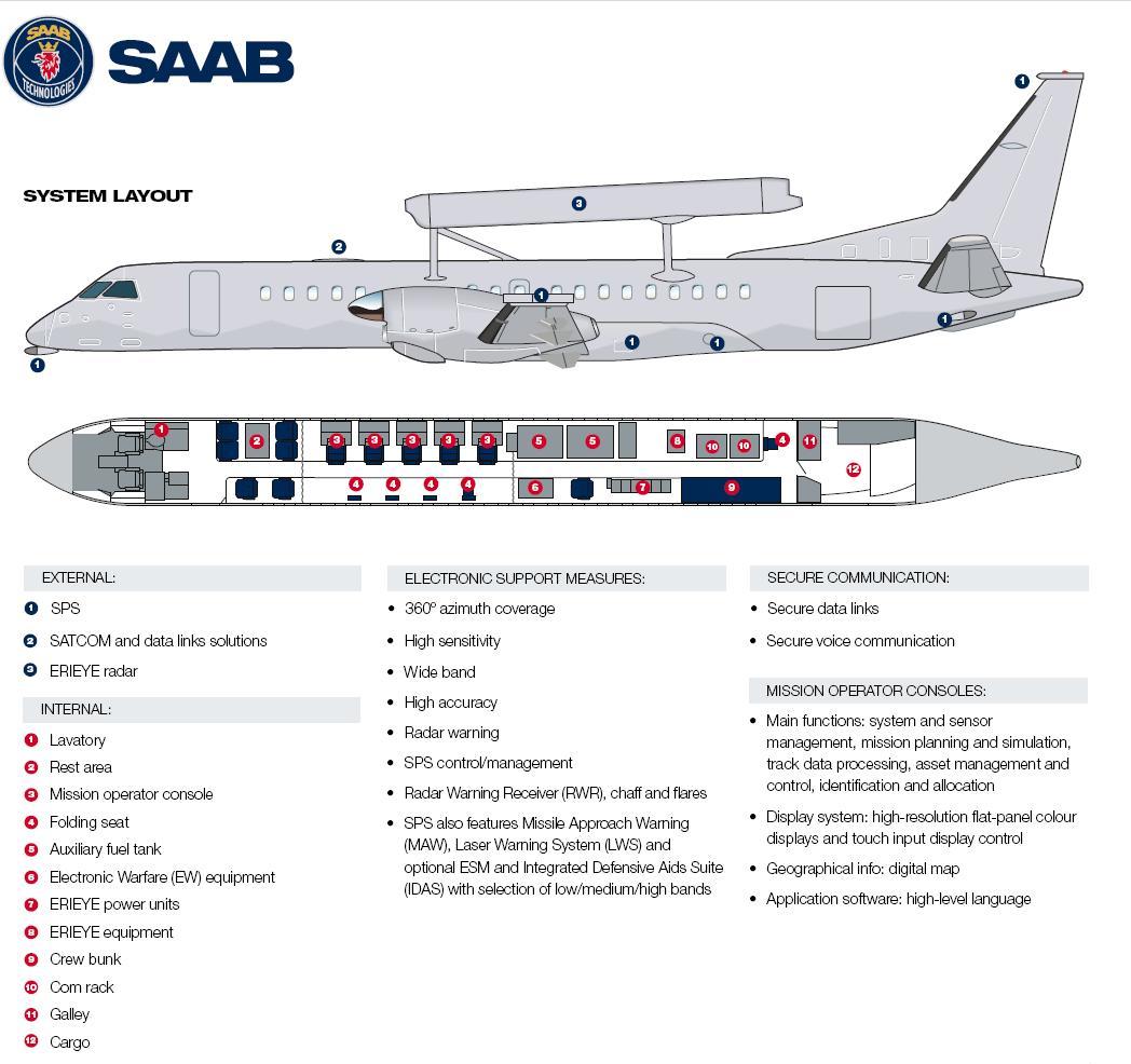 يتم ذكر الاتصالات عبر الأقمار الصناعية (SATCOM) في موقع شركة SAAB وعلى تقريبًا كل كتيب من كتيبات الشركة.