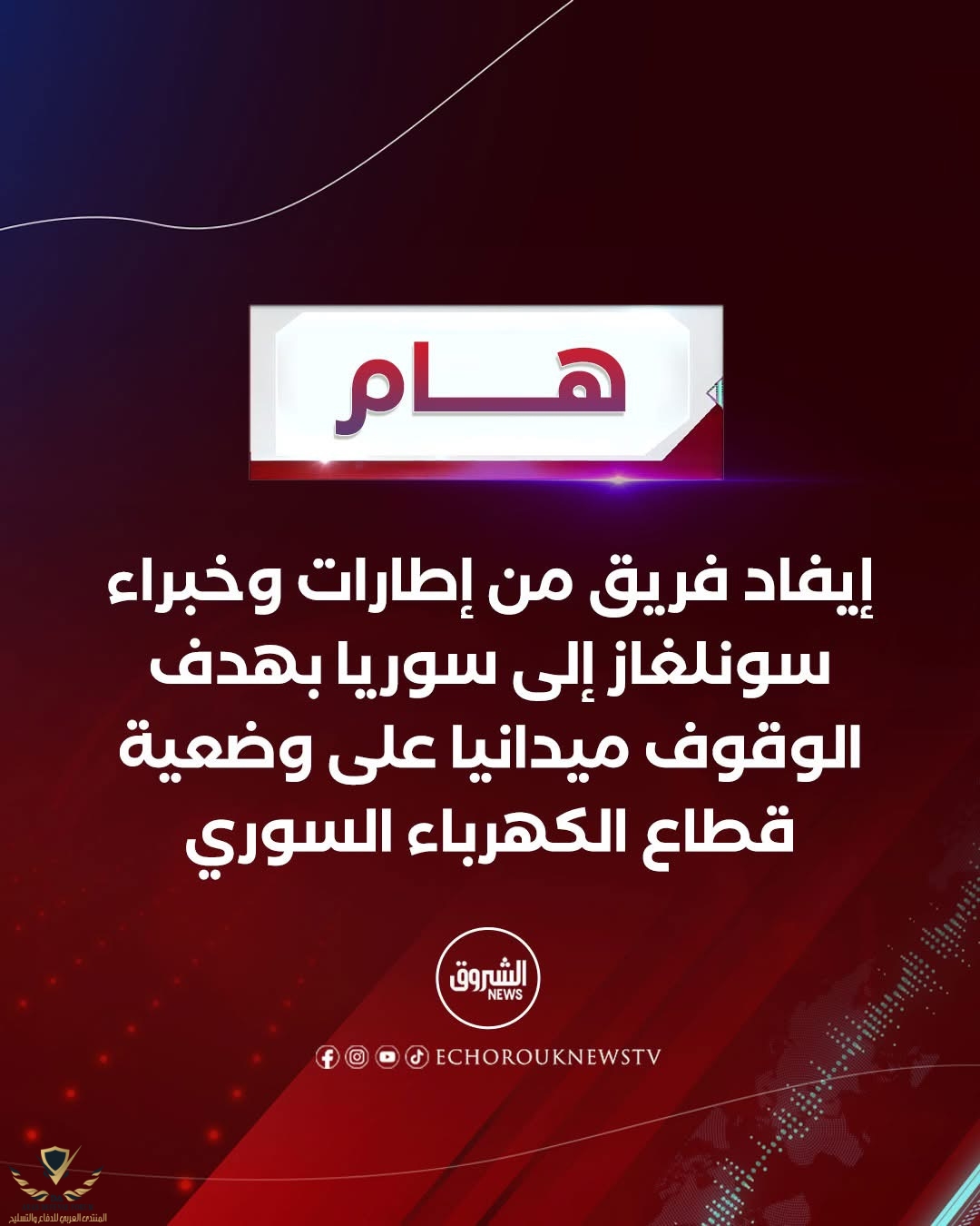 🔴تنفيذا لتوجيهات رئيس الجمهورية #عبد_المجيد_تبون الجزائر تقرر إيفاد فريق من الإطارات والخبراء والتقنيين التابعين لمجمع سونلغاز إلى سوريا بهدف الوقوف ميدانيا على وضعية قطاع الكهرباء السوري.