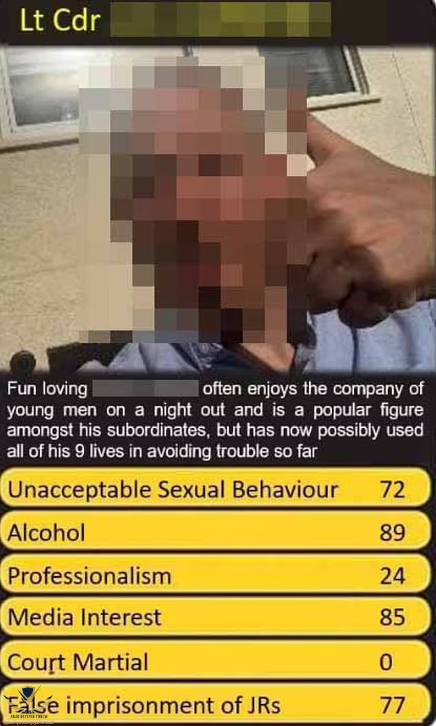 وعلمت صحيفة "ميل أونلاين" أن البحارة ابتكروا بطاقاتٍ بذيئةً على غرار بطاقات "توب ترامب" أُطلق عليها اسم "المُفسدون"، والتي يبدو أنها تُحتفي ببعضٍ من أسوأ مُرتكبي السلوكيات الفاحشة المزعومة - بمن فيهم ضباطٌ رفيعو المستوى.