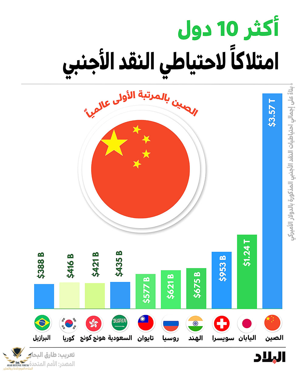 1. الصين أكبر دولة في العالم تمتلك احتياطيات من النقد الأجنبي في العالم، برصيد (3.73) تريليون دولار