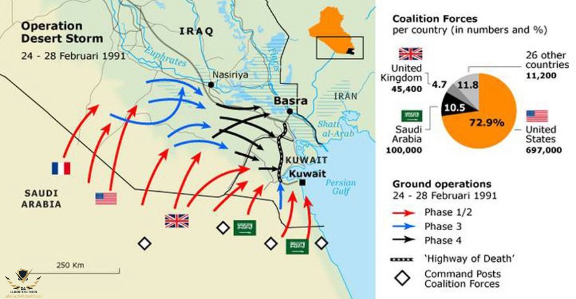دخلت قوات العربية كان معاهم الكويتيين و اذكر جيش السوري و مصر و السعودية و اظن شفت عمانين