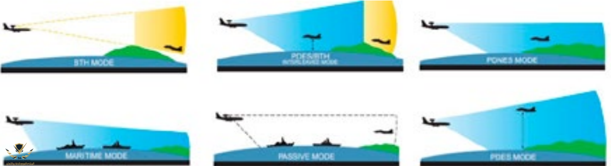 Receive Only Mode | نمط سلبي يستخدم فقط الاستقبال دون إرسال إشارات، يقلل البصمة الرادارية للطائرة. | جمع البيانات الاستخبارية دون الكشف عن موقع الطائرة، مثالي في بيئات التشويش والعداء. |