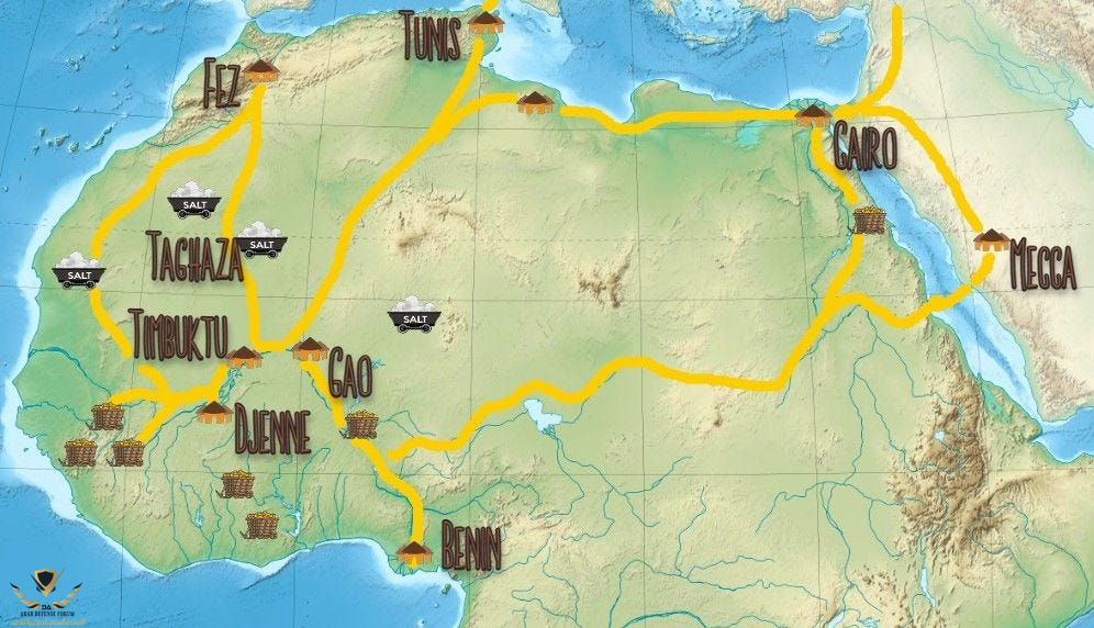 التجارة كانت أهم وسيلة احتكاك. قوافل العرب كانت تحمل اللبان والتوابل من جنوب الجزيرة إلى أسواق قرطاج ولِبدة الكبرى، وتعود بالذهب والعاج والملح. البكري أشار إلى أن بعض تجار الحجاز كانوا يعرفون طرق الصحراء المؤدية إلى سجلماسة، وهي مدينة لم تكن موجودة قبل الإسلام لكنها قامت على طرق تجارة قديمة.