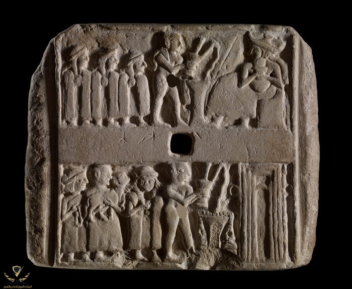 نقش حجري سومري مهم يوضح غطاء الراس للرجال ٢٥٠٠ قبل الميلاد وجد في مدينة أور في العراق،،