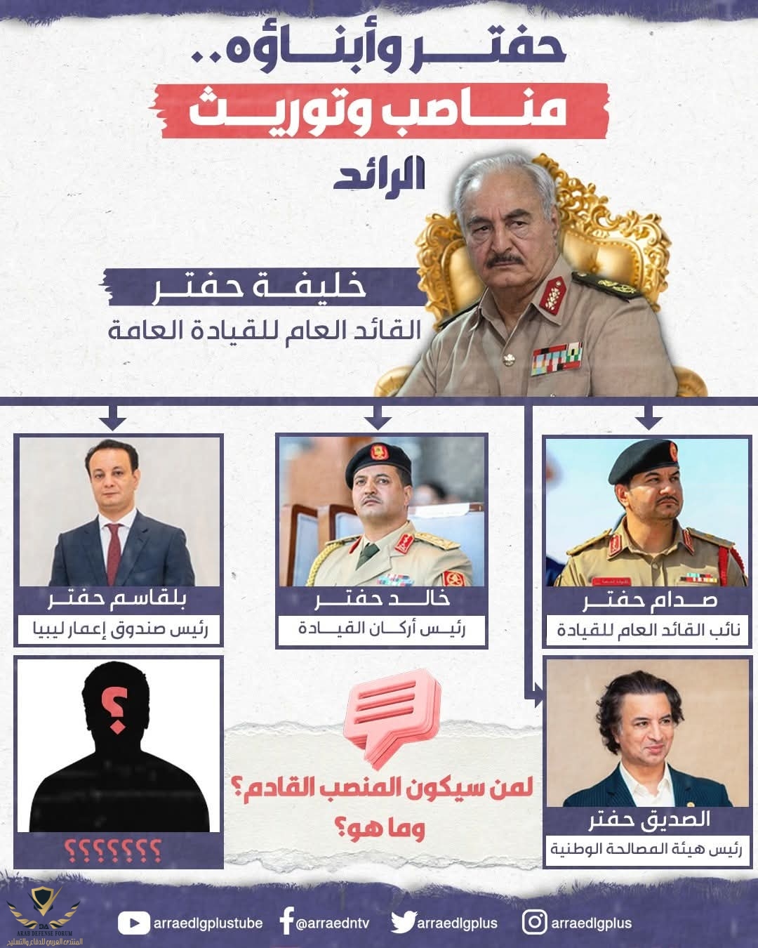 لا خلافات ولا هم يحزنون، واضح ان خليفة حفتر أرضى ولديه بأن جعل لكل واحد منهم منصب.