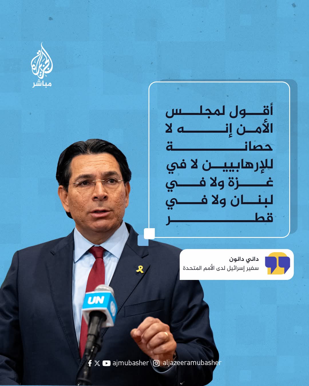 سفير #إسرائيل لدى #الأمم_المتحدة: لن نتراجع وسنواصل العمل بحزم ضد قادة الإرهـ ـاب أينما كانوا