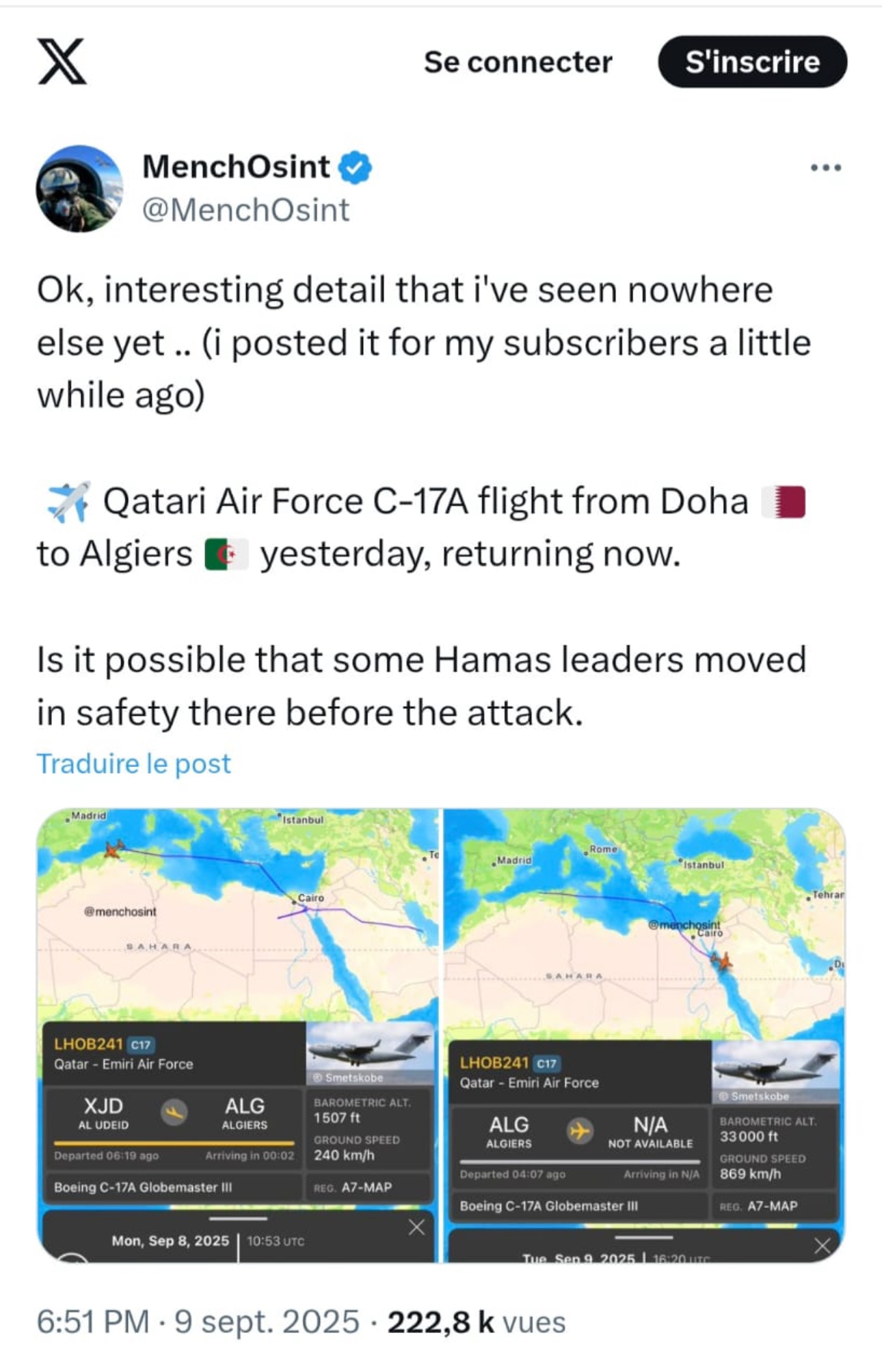 اتلم المتعوس علي خايب الرجاطائرةً c17 قطرية حلت بالجزائر ليلة امس وعادت لقطر