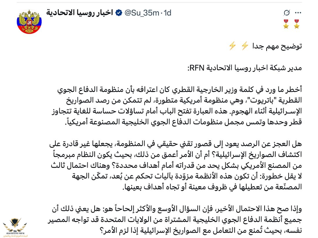العامل العامل الاساسى فى الموضوع ده اميركا بكل بساطه اميركا بتمتلك السيطره على منظومة القياده والسيطره فى قطر فى الاغلب من خلال قاعدة العديد ودى اللى بتنظم التنسيق بين الدفاع الجوى وسلاح الجو فى حالة هجوم معادى جوى