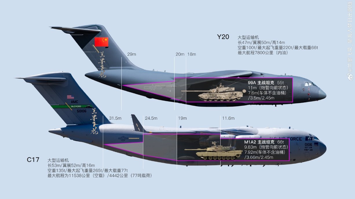 Y-20B الخيار الامثل والبديل الوحيد لطائرة C-17 Globemaster الذي يمكنه نقل دبابة رئيسية حديثة او انظمة دفاع جوي ورادارات..الخ