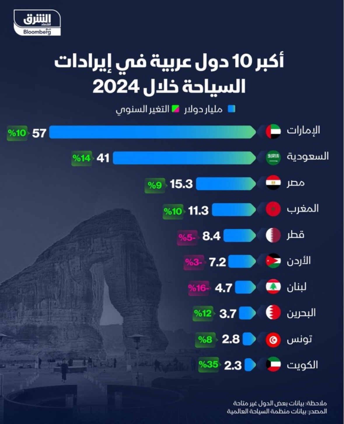 أكبر 10 دول عربية في إيرادات السياحة خلال 2024م