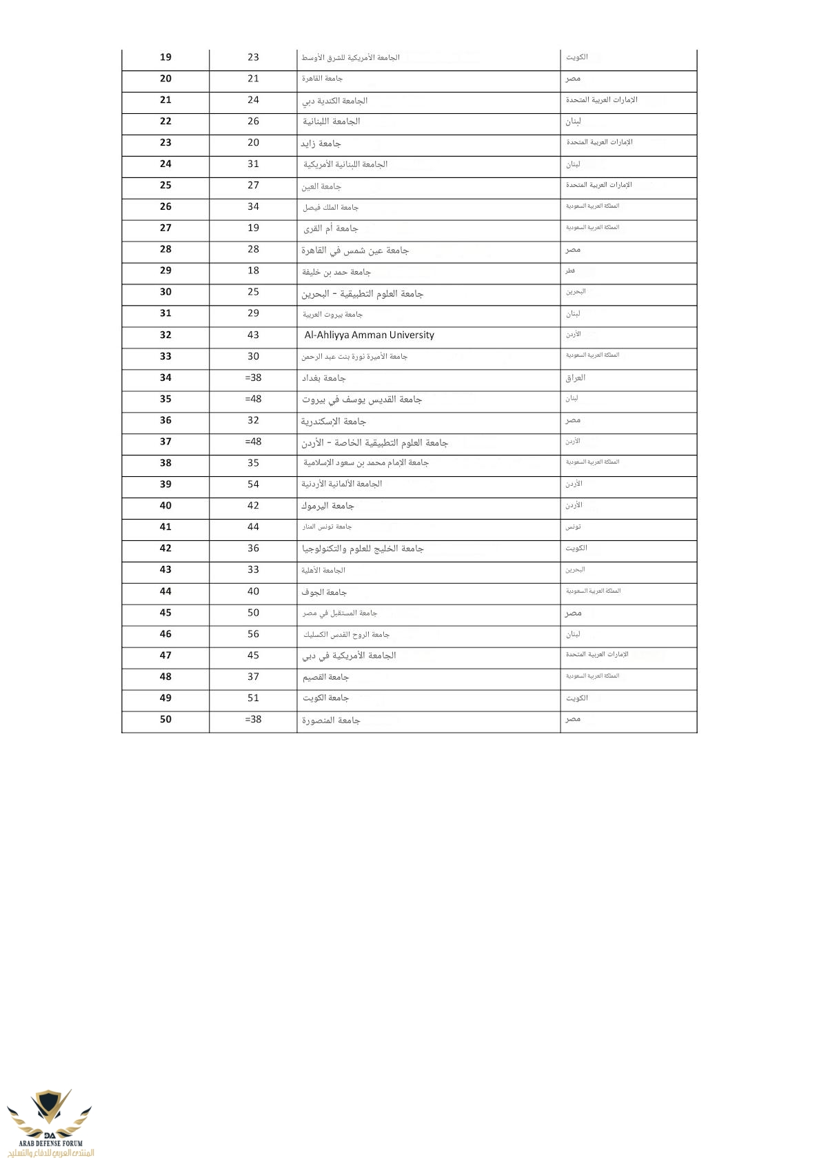 أما الأفضل عربيا من حيث جودة التعليم الجامعي في التصنيف عالميا كان من نصيب دولة المملكة العربية السعودية المتصدرة في المرتبة الأولى لسنة 2026: