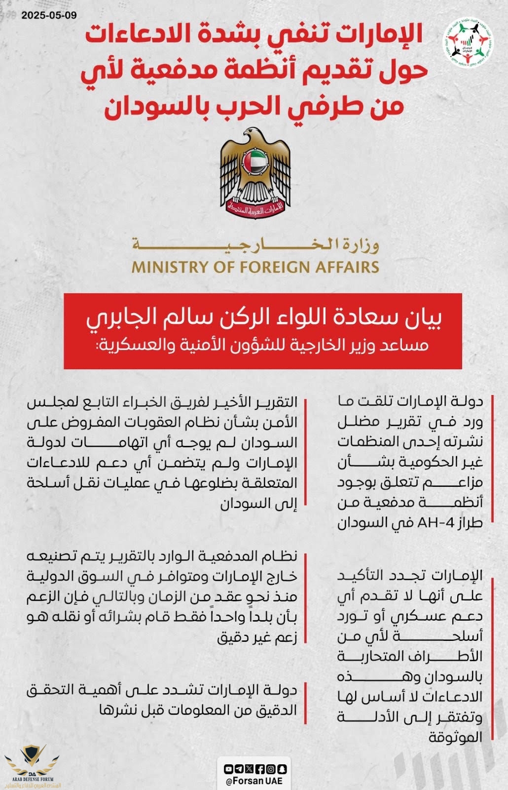 الامارات خلال الحرب الاهليه في سودان نعم تم تصدير العديد من الذخائر وكان احد اطراف الحرب