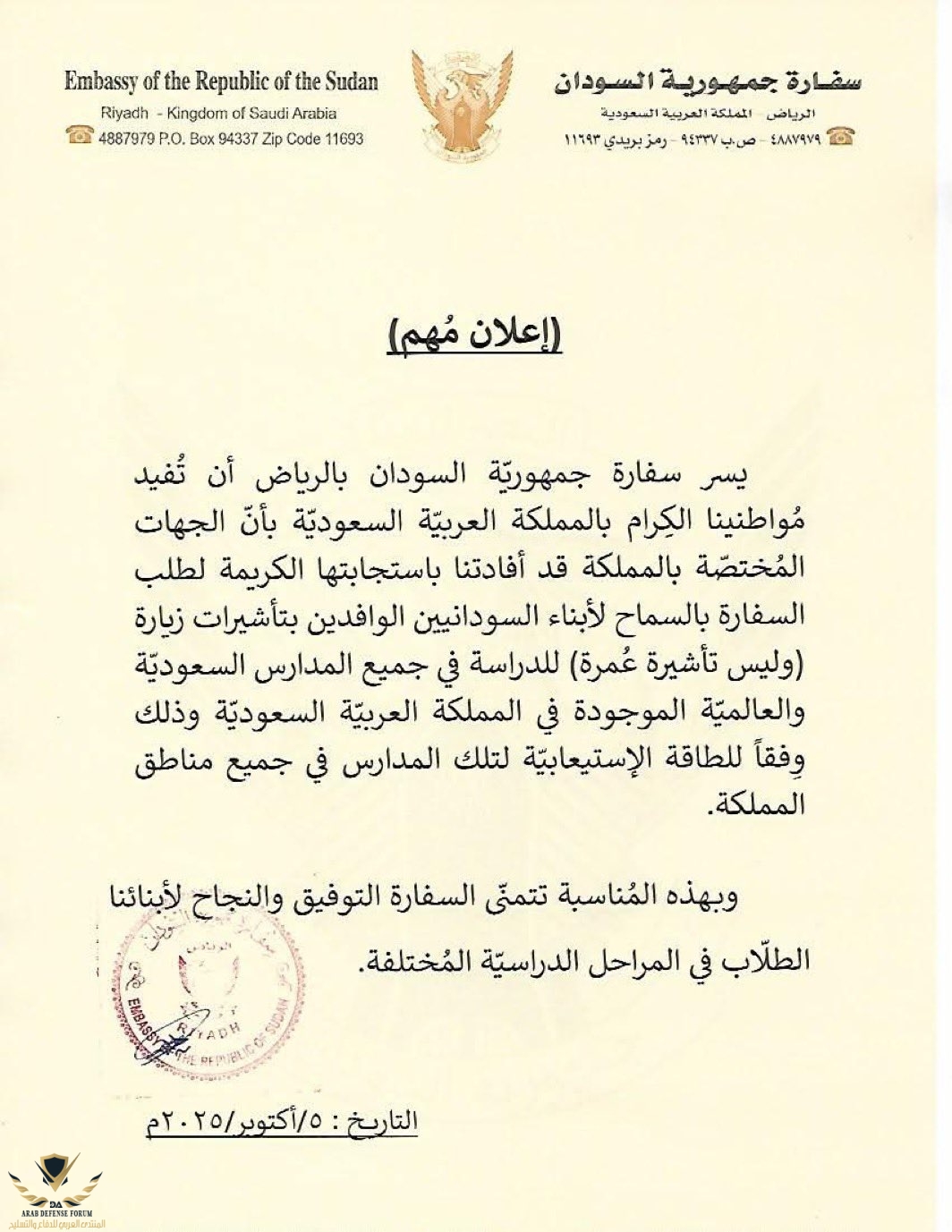 ادرة التعليم السعوديه تفتح ابواب مدارس التعليم لابناء الأخوة السودانيين القادمين الى السعودية بتاشيرة زيارة للتدريس ابنائهم