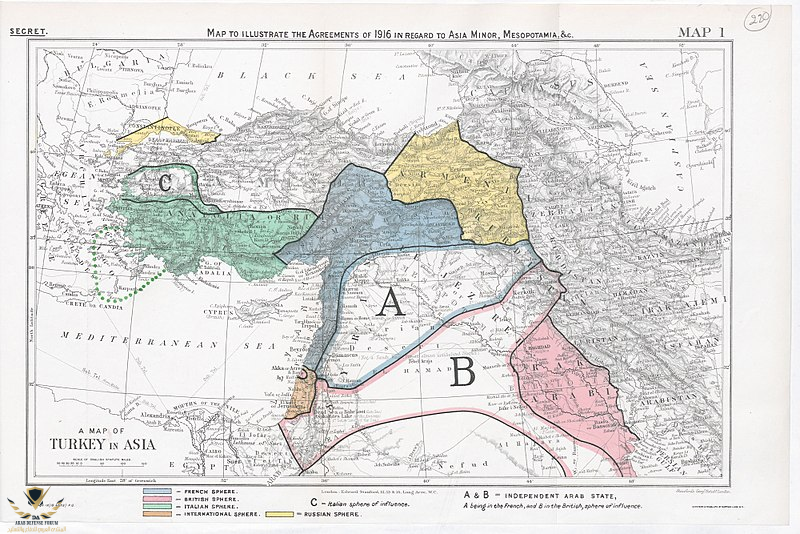 أثناء الحرب العالمية الأولى (1914-1918)، وعدت بريطانيا العرب بالاستقلال التام إذا ثاروا ضد الأتراك (الدولة العثمانية). أشعلت "الثورة العربية الكبرى"، لكن ما حدث كان خيانة مدوية. ففي الخفاء، كانت بريطانيا وفرنسا ترسمان "اتفاقية سايكس بيكو" (1916) لتقسيم الكعكة العربية بينهما.
