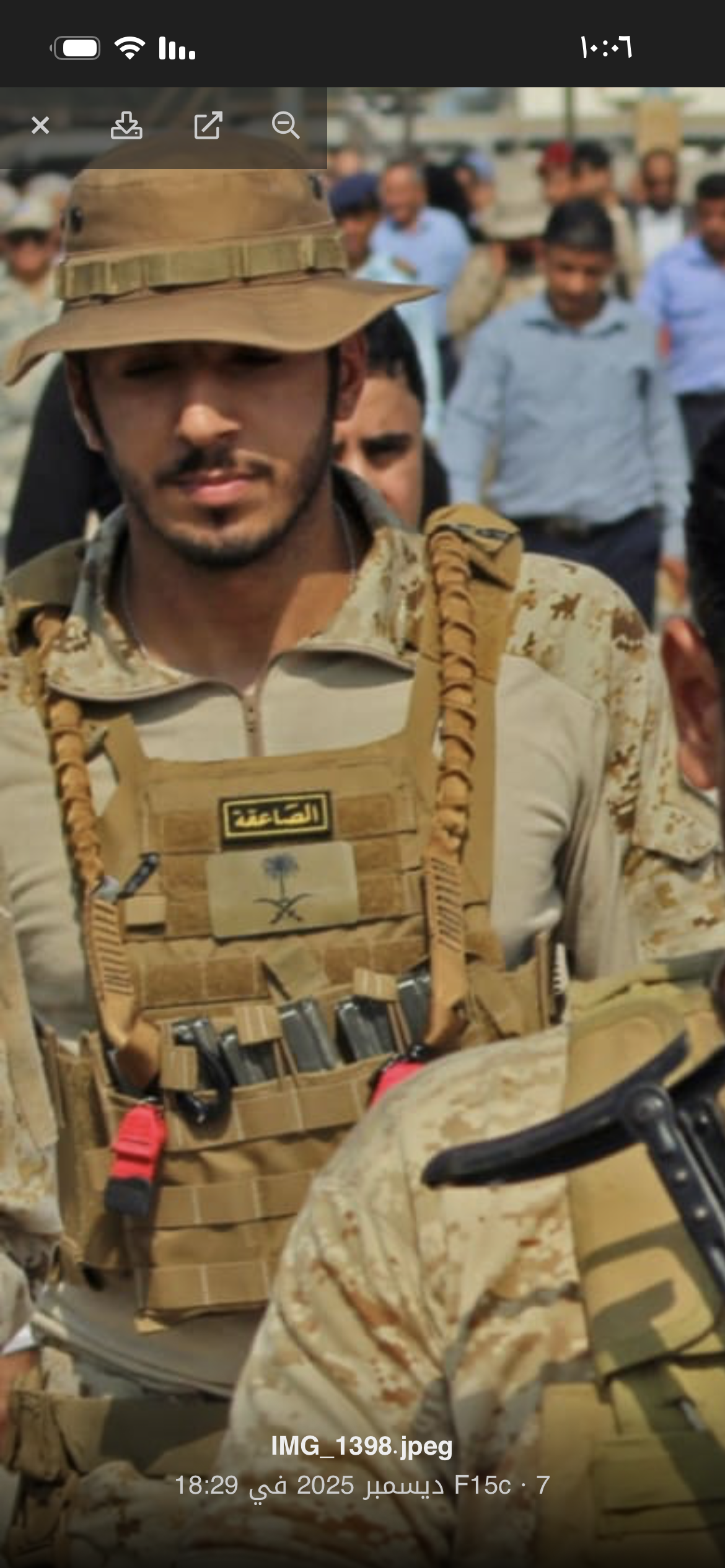 كبّر صورته الثانية تشوف البادج تبع قوات درع الوطن المدعومة سعودياً واللي إستلمت المواقع بعد طرد الإنتعالي المدعوم إماراتياً .😂
