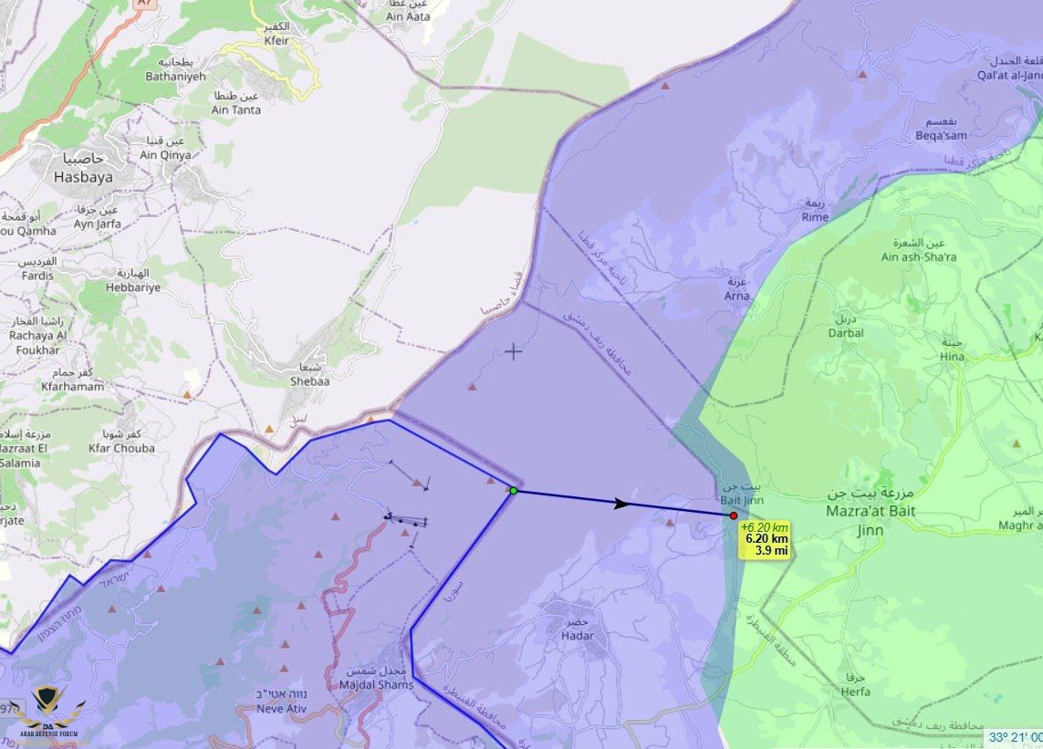 هذه خريطة يظهر فيها قرية بيت جن جنوب سوريا، وقد وسّعت إسرائيل منطقة سيطرتنا هناك لتشمل بيت جن، التي يجب إبعادها عن أراضينا (التوسعة الجديدة - باللون الأزرق).لشهور، حذّرنا من وجوب إبعاد رعايا العدو عن أراضينا باستثناء الدروز، والتلميح يكفي للعاقل، لكن قيادة الأركان العامة لا تفهم إلا القرمزة. لذا ستفعلون ذلك الآن، وعلى وزير الدفاع أن يتجاهل قيادة الأركان أكثر