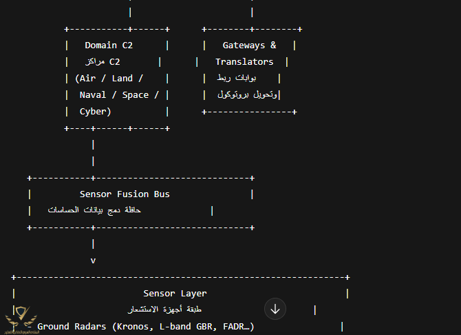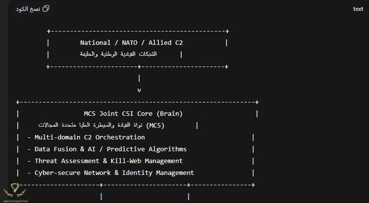 الإدارة المتزامنة والمتكاملة للتهديدات المتنوعة، مستفيدًا من الترابط بين المجالات الجوية والبحرية والبرية والفضائية، ضمن بيئة آمنة سيبرانية مدعومة بنظام ذكاء اصطناعي متطور.