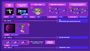 بالإضافة إلى هذه الأقمار الصناعية المخصصة، وفقًا للعرض، لرصد الاستخبارات والمراقبة والاستطلاع (ISR) وكشف التغيرات، في مدارات تتراوح بين 450 و550 كيلومترًا،