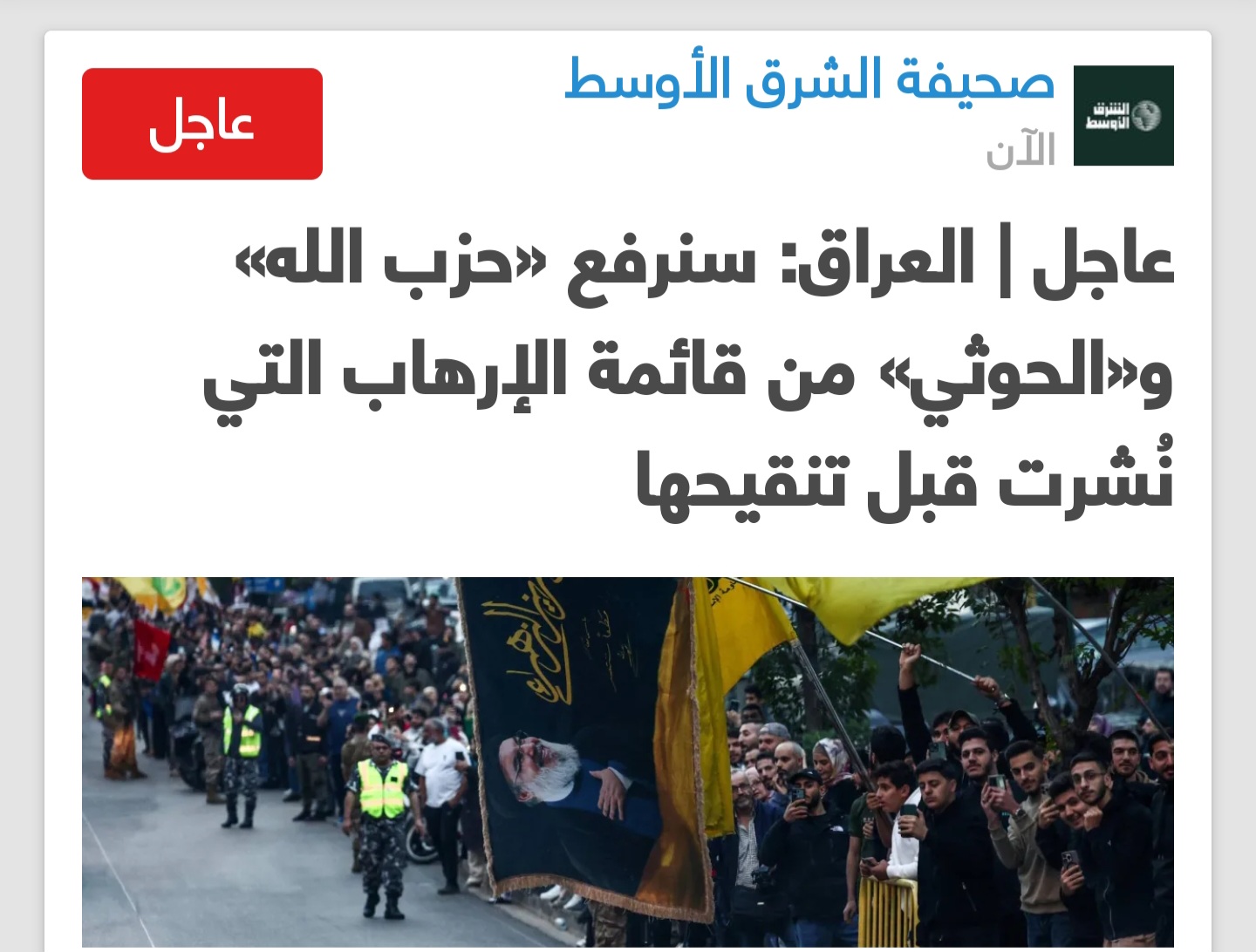 العراق يصنف الحوثي وحزب الله جماعات ارهابية