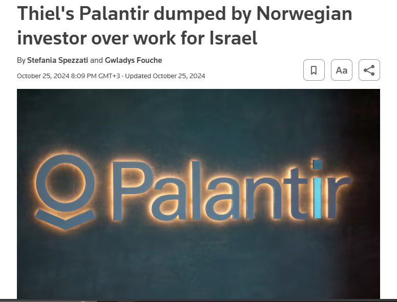 شركة بالنتير متهمة بالمشاركة في جرائم الاحتلال في غزة وتزويد الاحتلال بتكنولوجية مراقبة عامة وذكاء اصطناعي كي يتم اختبارها على اهلنا في غزة.. والاحتلال بالفعل استخدم البيانات والذكاء الاصطناعي لاستهداف الفلسطينيين وهناك برامج معروفة منها ما هو معلن ومنها ما زال سري.. المُعلن مثل Where is Daddy? وهو برنامج تتبع ومراقبة ويقوم على نظام أشبه بنظام تجميع النقاط وبنفس الوقت المراقبة العامة للمطلوبين والمقاومين.. أي يستهدف الجميع دون استثناء.. بحيث يتم مراقبة كافة بيانات المواطنيين الفلسطينيين في غزة والضفة وتحديداً غزة.. ويتم مراقبة رسائلهم ومنشوراتهم على مواقع السوشيل ميديا واتصالاتهم ، اي بالمختصر تتبع كامل للبصمة الرقمية لكل فرد فلسطيني.. ومن يتجاوز حد معين من النقاط السلبية او الاشتباه به يتم ارسال درون لتتبع موقعه وقتله بين عائلته واهله.. وهذه العملية تتم عبر الذكاء الاصطناعي بالكامل دون تدخل بشري.. من المراقبة وجمع البيانات وتجميع النقاط الى ارسال الدرون والاستهداف وسط المدنيين والأهل.. وايضاً له استخدام لمراقبة المقاومين الفلسطينيين، ومن ثم قتلهم حين يعودون لمنازلهم لرؤية أطفالهم وأهاليهم.. لهذا اسموه "اين أبي؟".. انا متأكد من أن هناك برامج أكثر سوداوية ولكنها ما زالت سرية وغير مفصح عنها.. وكلها مدعومة بتكنولوجيا أمريكية من شركات مثل بالنتر وجوجل ومايكروسوفت وميتا.. شر مطلق.