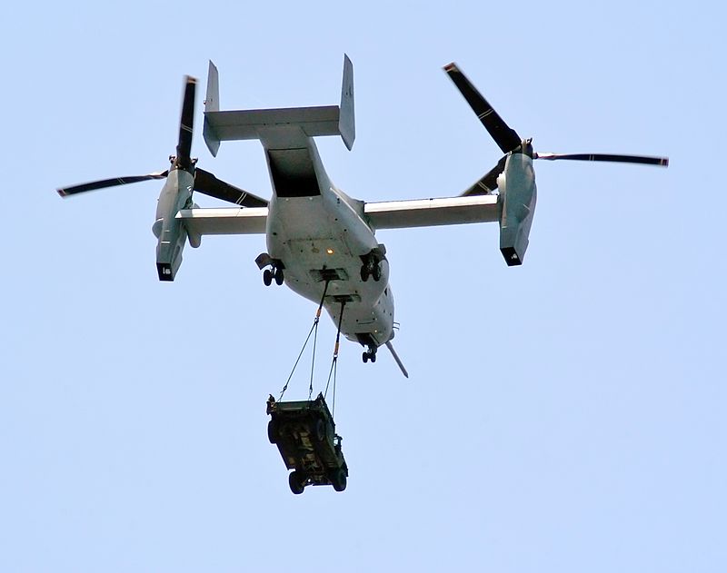 الطائرة V-22 طائرة غير عادية فهيا لها القدرة علي الارتفاع والصعود كالهليكوبتر والطيران بسرعة ومدي الطائرات ذات الأجنحة الثابتة وذلك عن طريق لوي كنة محركها للامام خلال طيرانها.