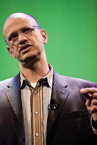 إيلون ماسك بجوار سيارة تيسلا طراز إس، في عام 2011