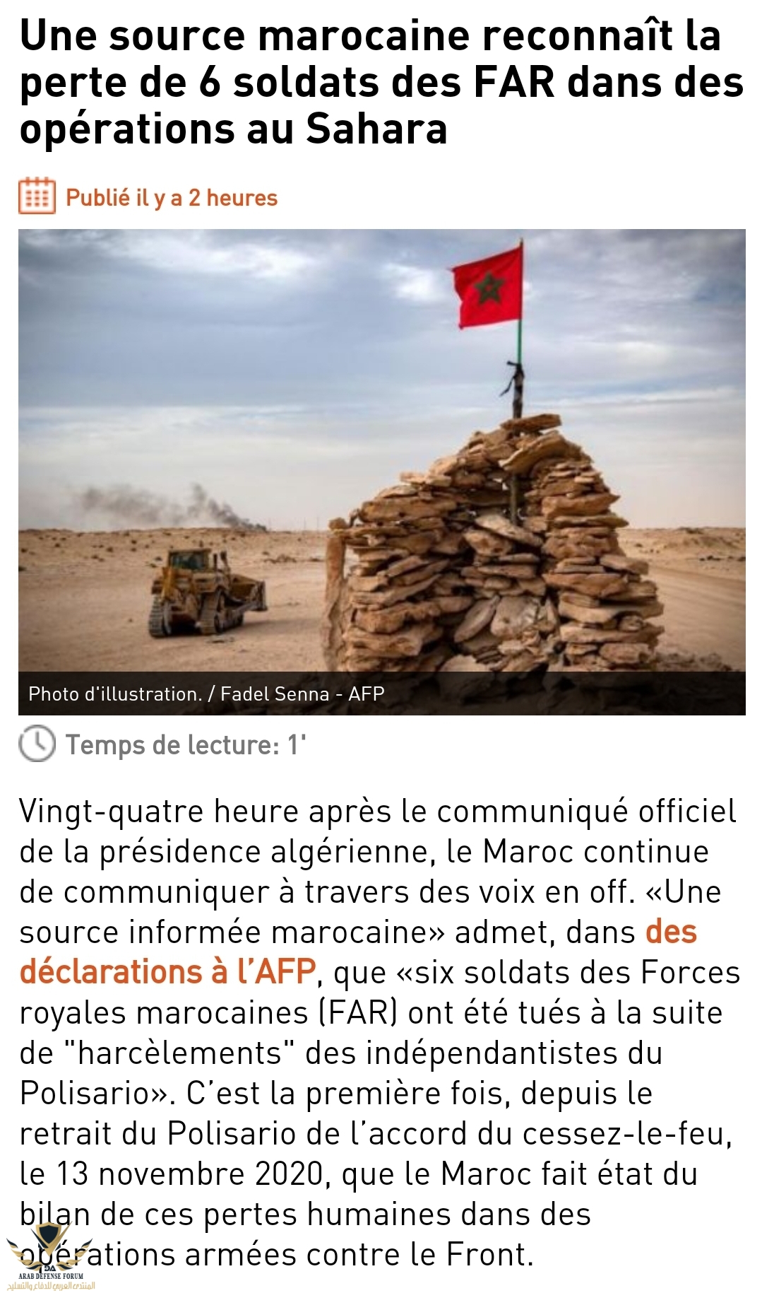 هاد الجريدة تنشر الكثير من المغالطات و الكذب، و المغرب يعلن عن خسائره البشرية بكل شجاعة و مسؤولية و يقام لهم جنازة في مدنهم و قراهم بحضور ممثلين عن السلطة، هذا التخربيق مكاينش اتمنى ان تتوقفوا عن نشر الخزعبلات و تبني التصريحات الرسمية