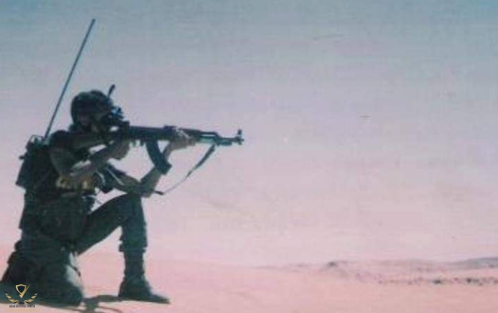صورة من ثمانينات لجندي مغربي بجهاز رؤيا ليلية في الصحراء