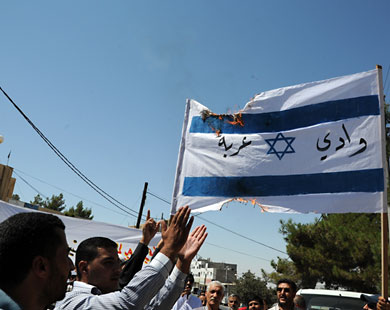 مواطنون أردنيون يحرقون علما لإسرائيل كتب عليه اسم معاهدة وادي عربة