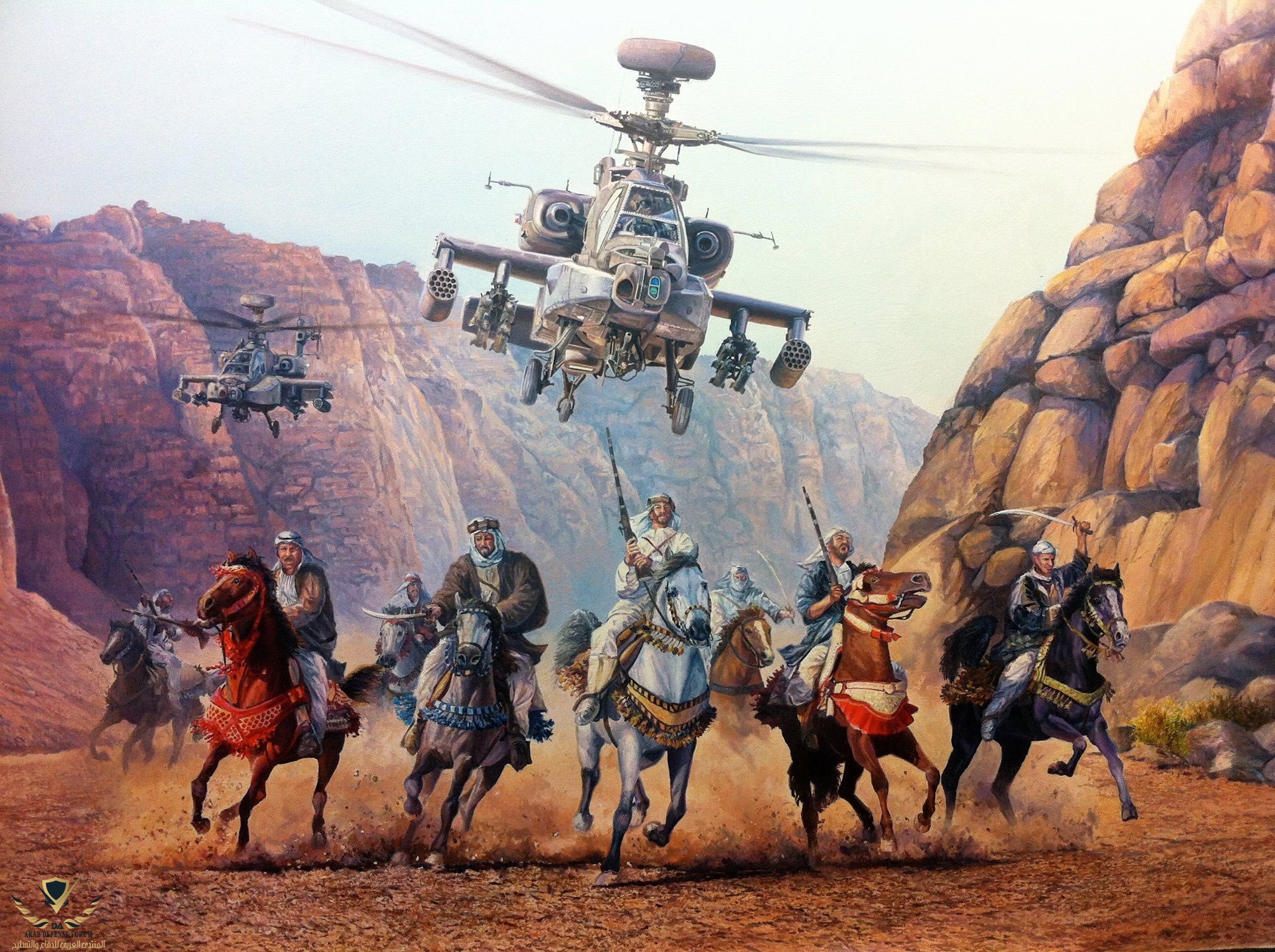 نعم اخي صورة تعبر عن الأصالة والمعاصرة.هدية شركة بوينغ للقوات البرية الملكية السعودية بعد طلب الأباتشي