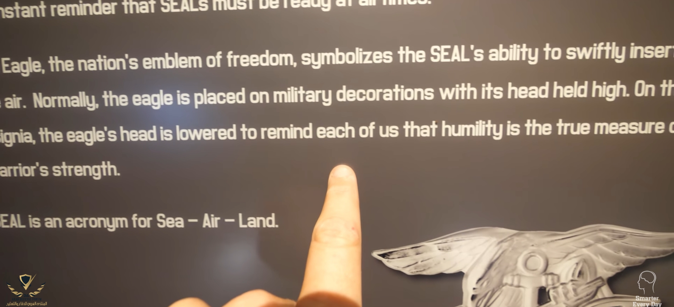 في أمريكا جميع رموز الدولة يظهر بها النسر و رأسه في الاعلى الى رمز قوات Seals ، السبب في الصورة من داخل مقر القوات: