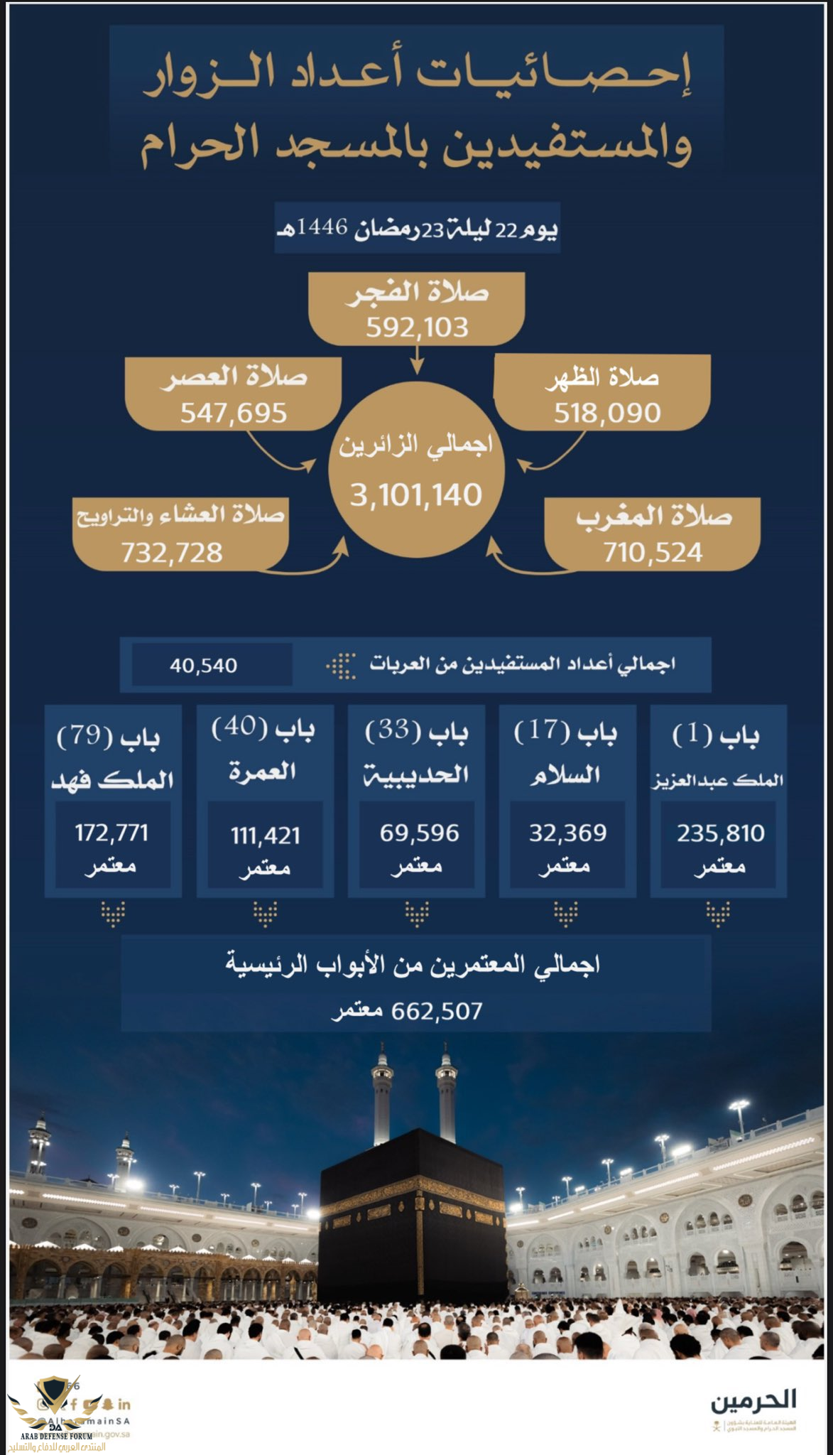 وبحسب الهيئة العامة للعناية بشؤون المسجد الحرام والمسجد النبوي يوجد بالمسجد الحرام 13 مئذنة متشابهة في تصميمها لكنها تختلف في أطوالها مشكلة تُحفًا معمارية على مر العصور، وهي منارتان بباب العمرة طولهما 137م، ومنارتان بباب الملك عبدالعزيز طولهما 137م، ومنارتان بباب الملك فهد طولهما 98م، ومنارة واحدة بباب الصفا طولها 98م، ومنارتان بباب الفتح طولها 137م، وأربع منارات بالتوسعة السعودية الثالثة طولها 135م.