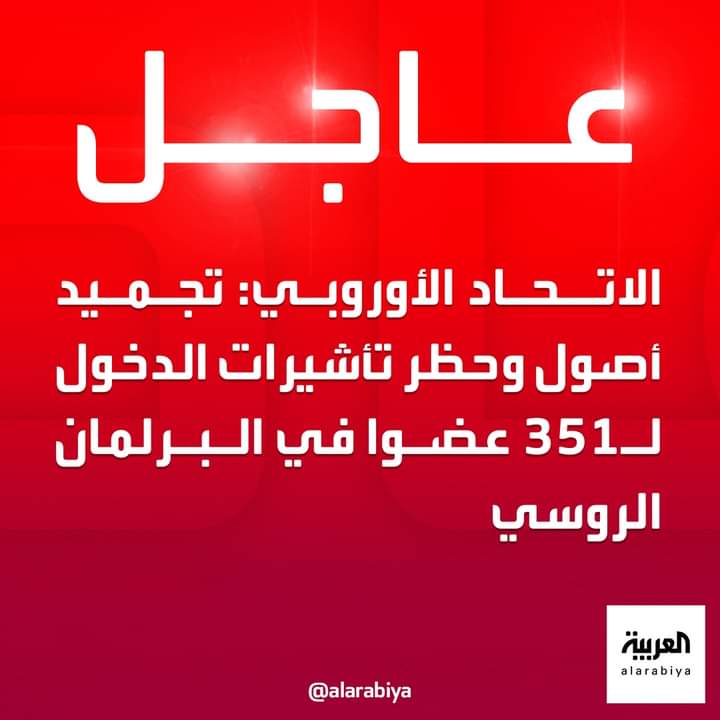الاتحاد الأوروبي: تجميد أصول وحظر تأشيرات الدخول لـ351 عضوا في البرلمان الروسي