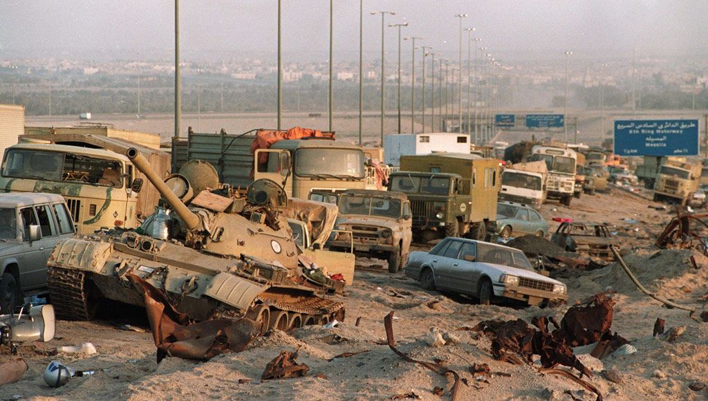 جايب صور من ضرب الانسحاب العراقي من الكويت وجاي تجادل