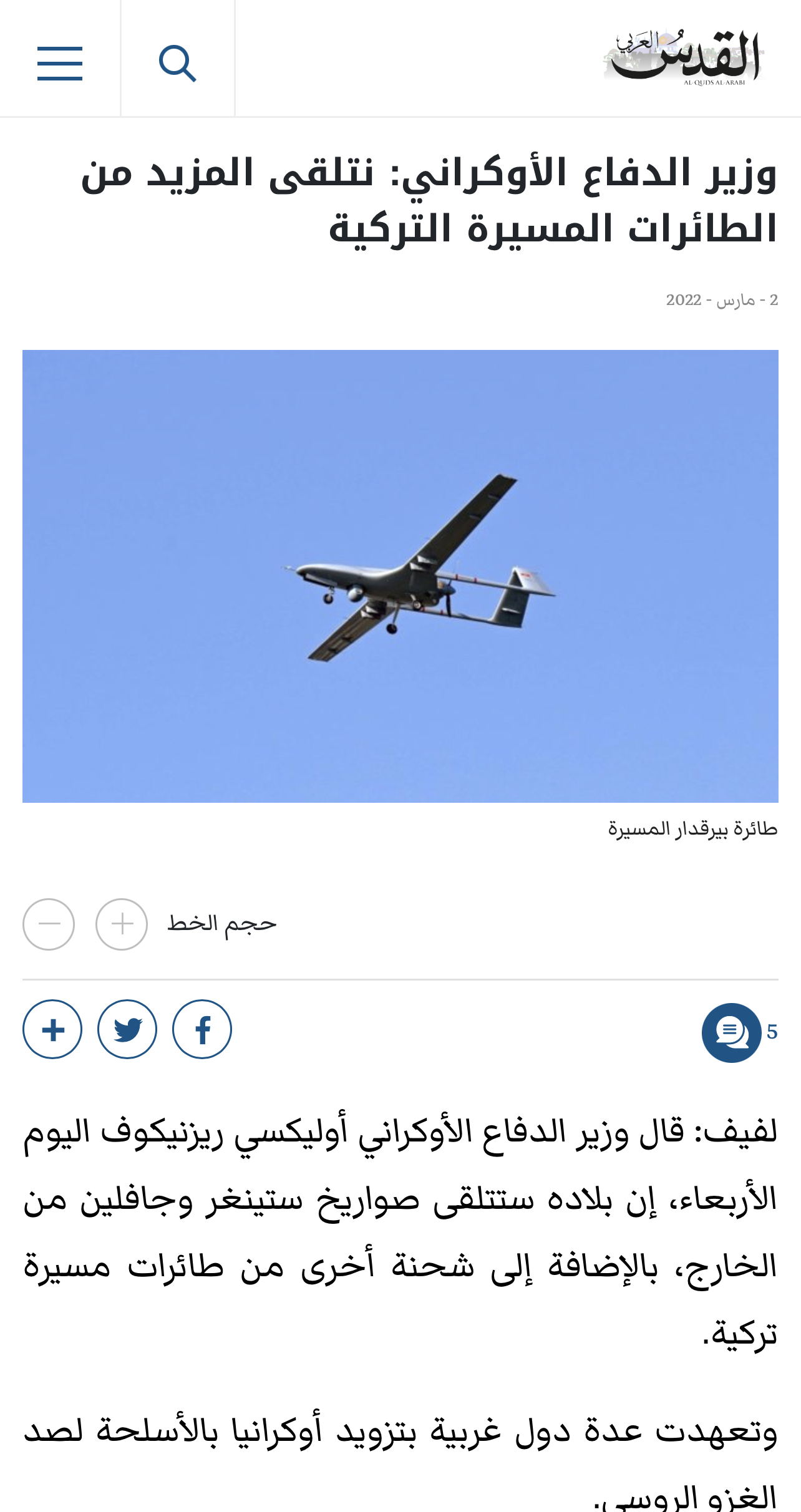 اولا القدس تبع عبد الباري عطوان اعتقد مصدر ممنوع هنا ثانيا لو راجعت ردودي بخصوص الشحنات لوجدت الجواب الاوكران تعاقدوا عل 24 مسيرة وكذلك تصنيع 48 في اوكرانيا استلم الاوكران دفعتين 12 مسيرة قبل الحرب ودفعة اثناء المعارك وهو ما يتحدث عنه مصدرك وباقي دفعة 6 مسيرات ي ان اوكرانيا استلمت 18 مسيرة فقط